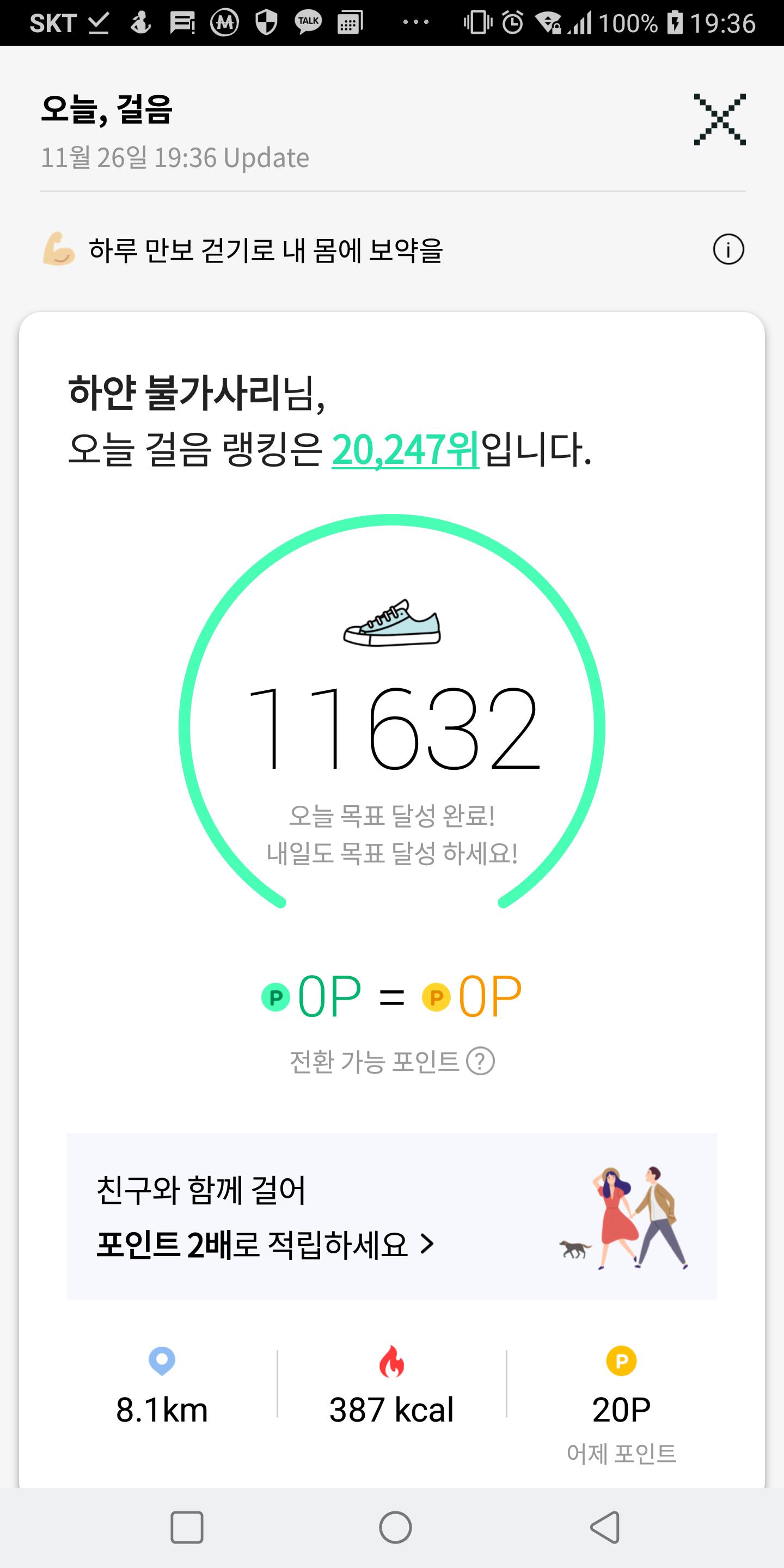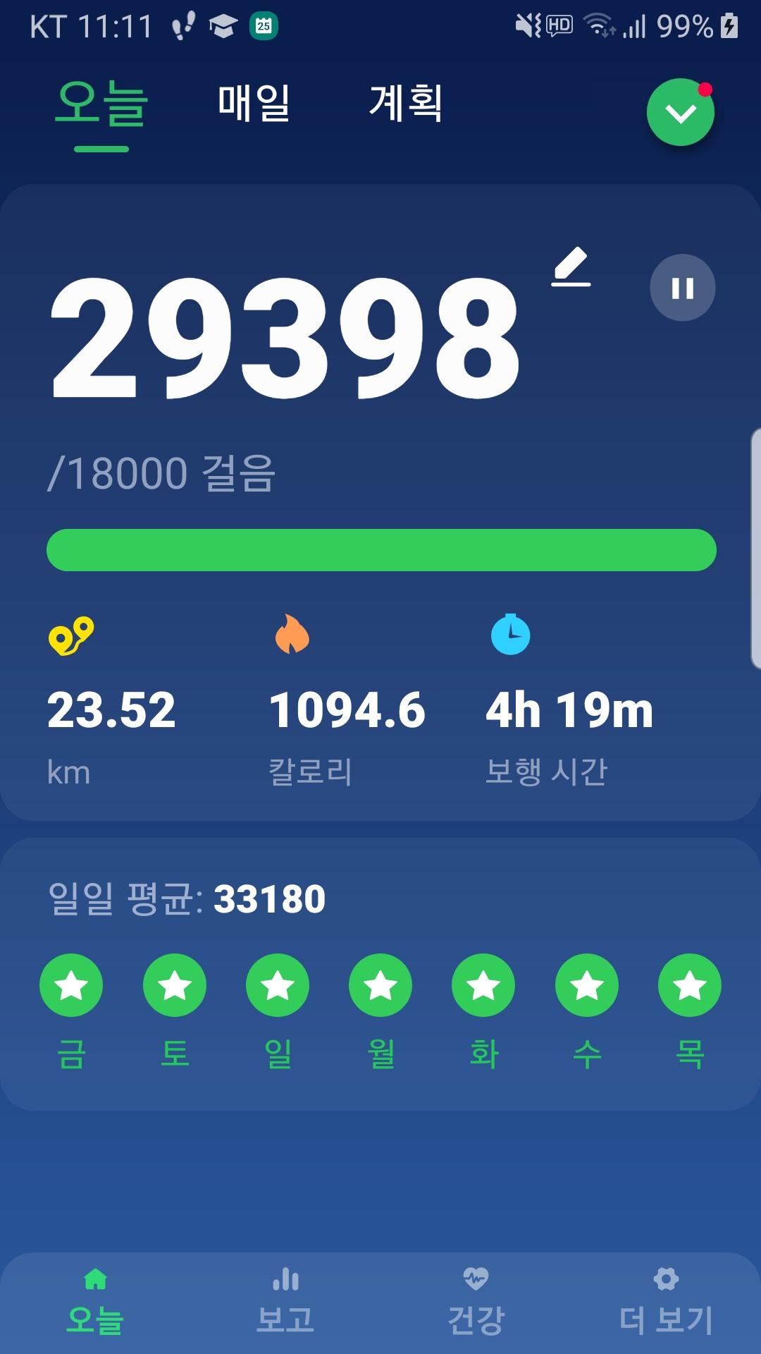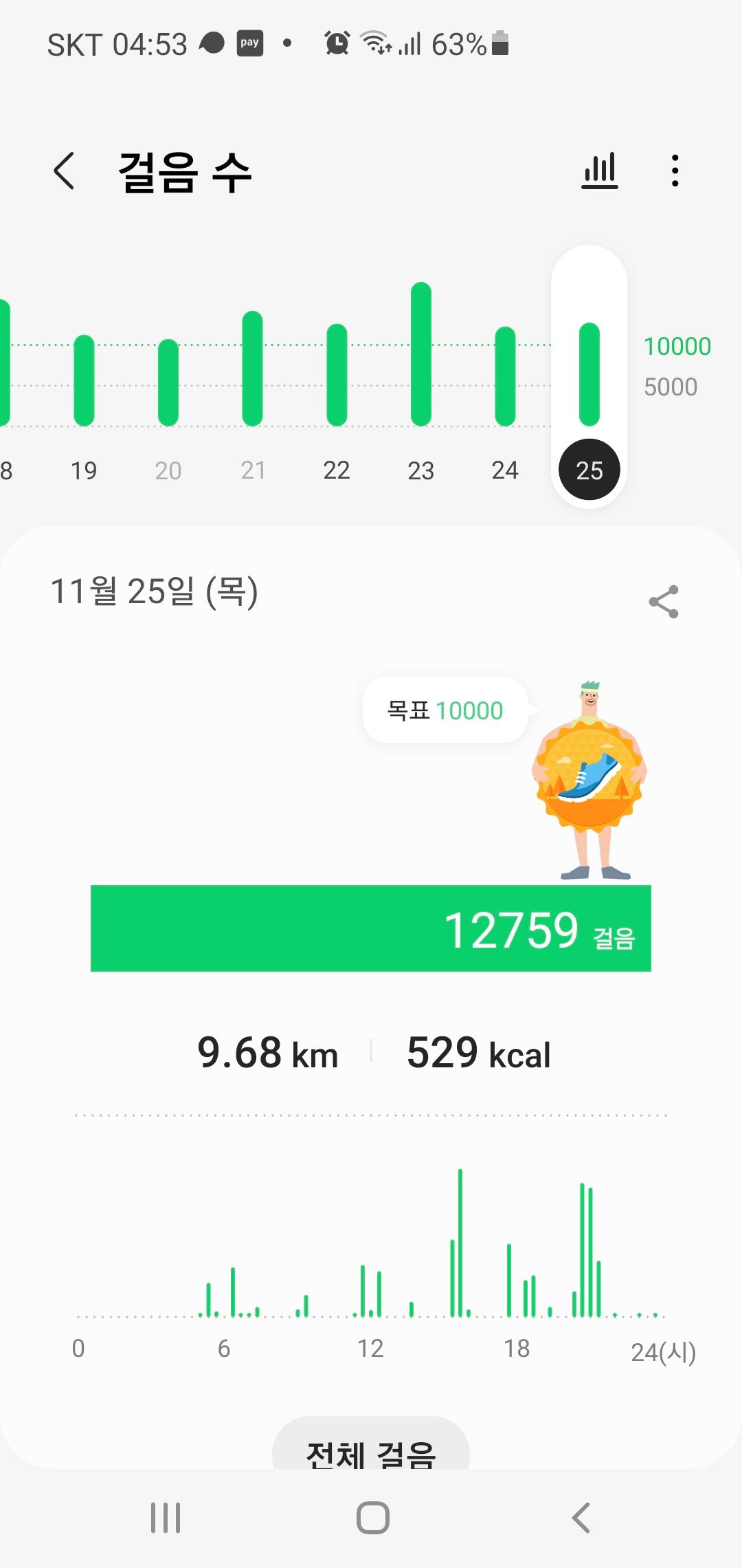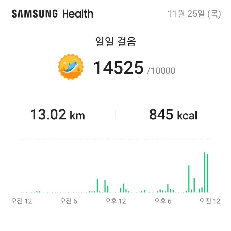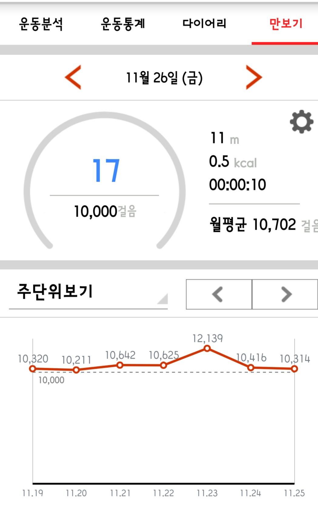 11월 25일 1만보 이상 걸음수 인증합니다.^^