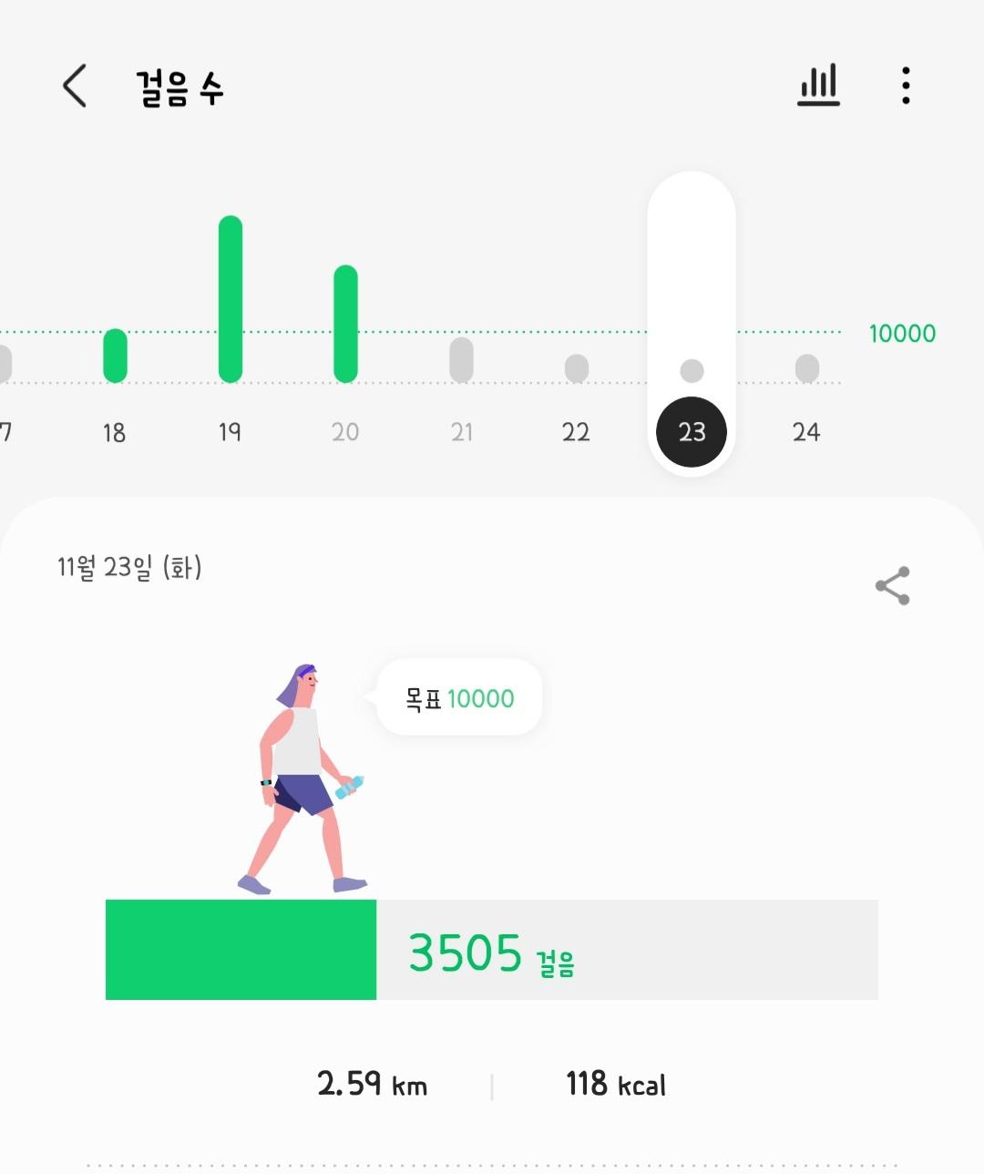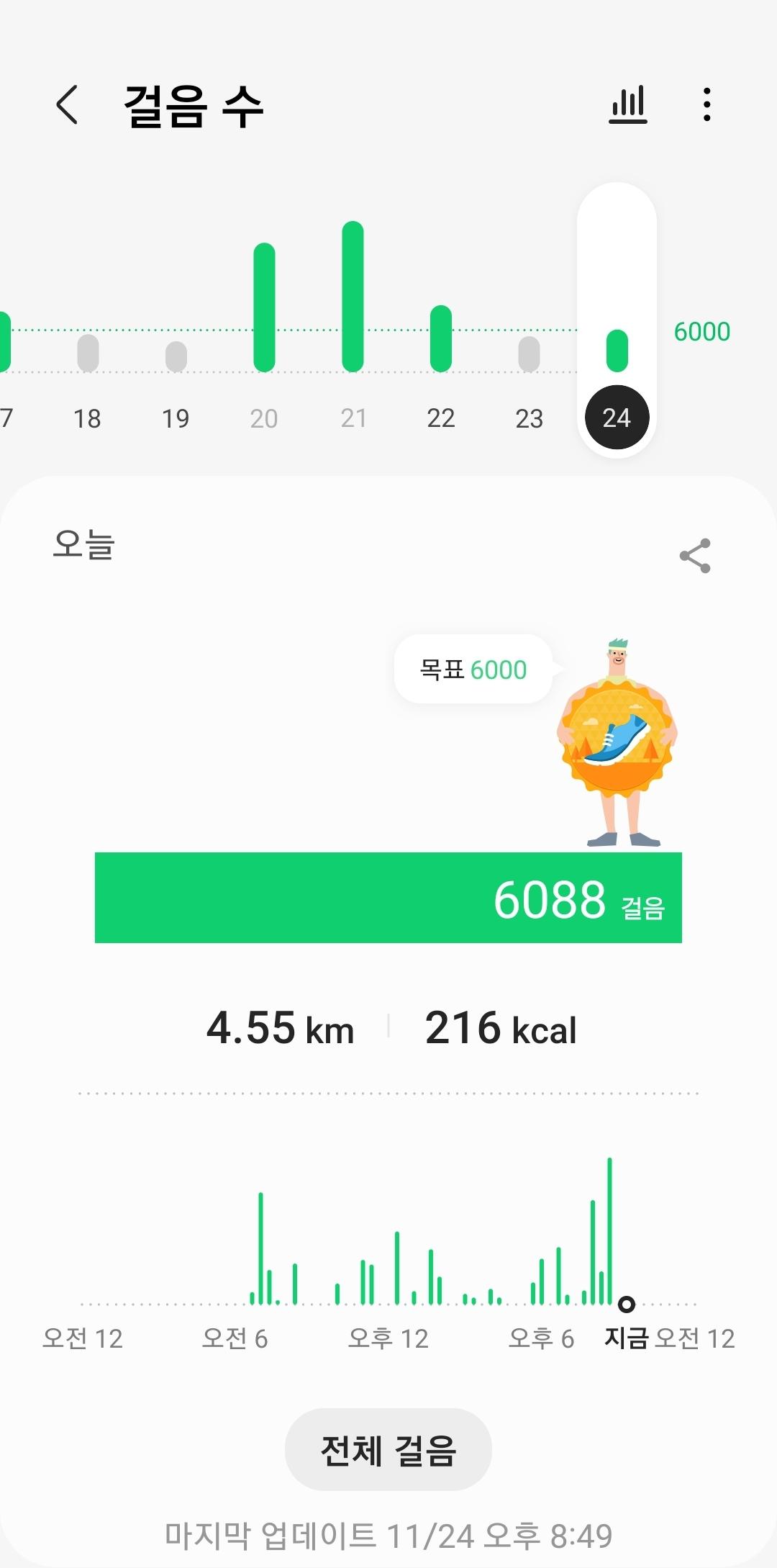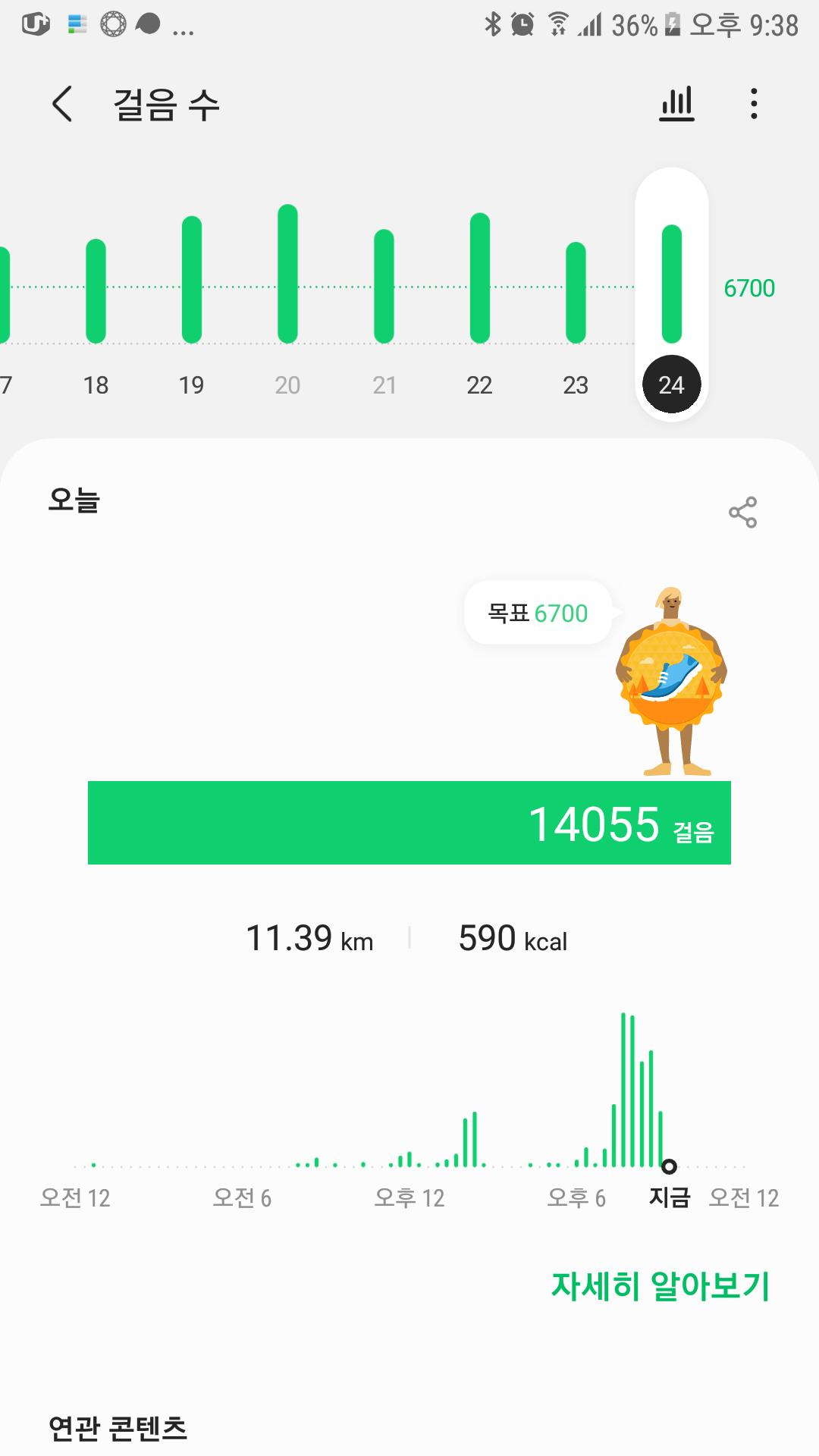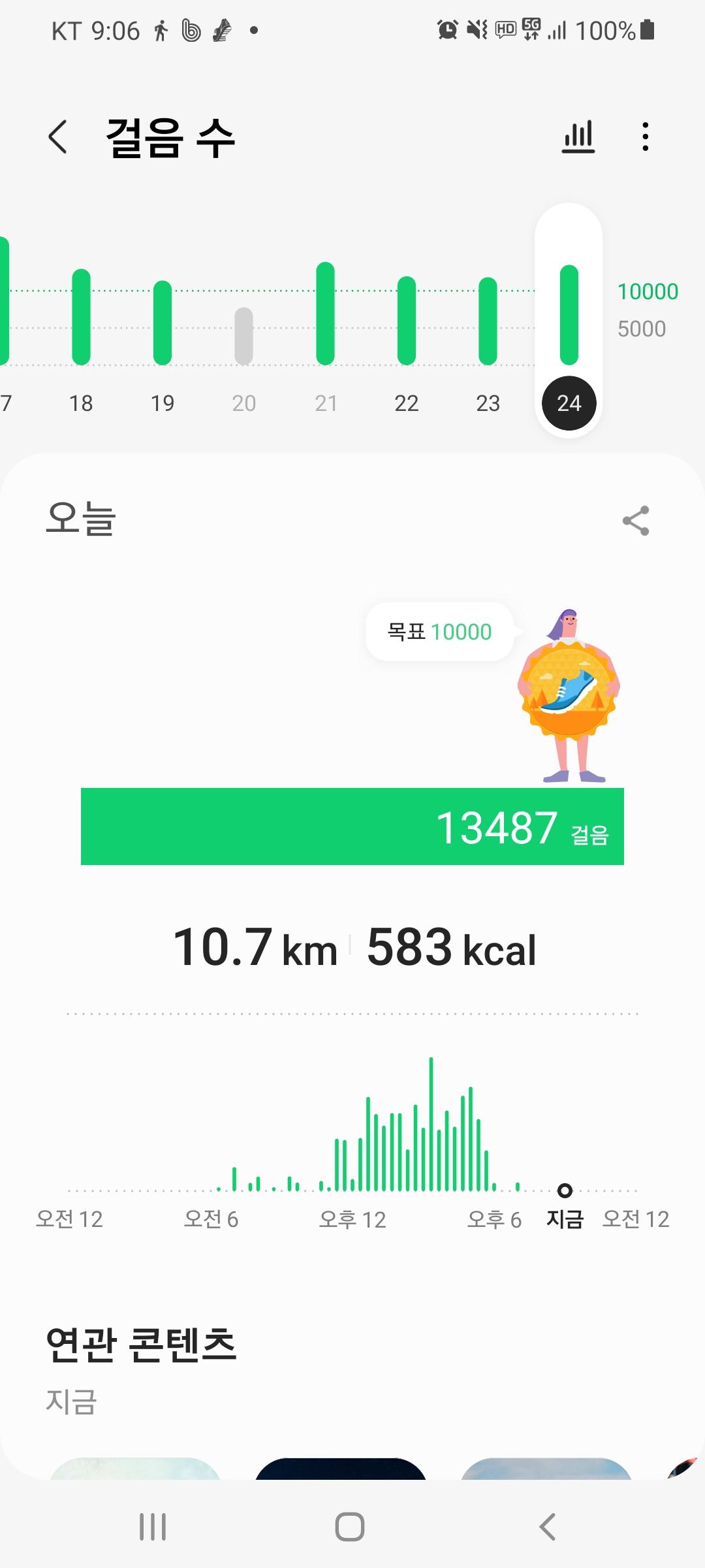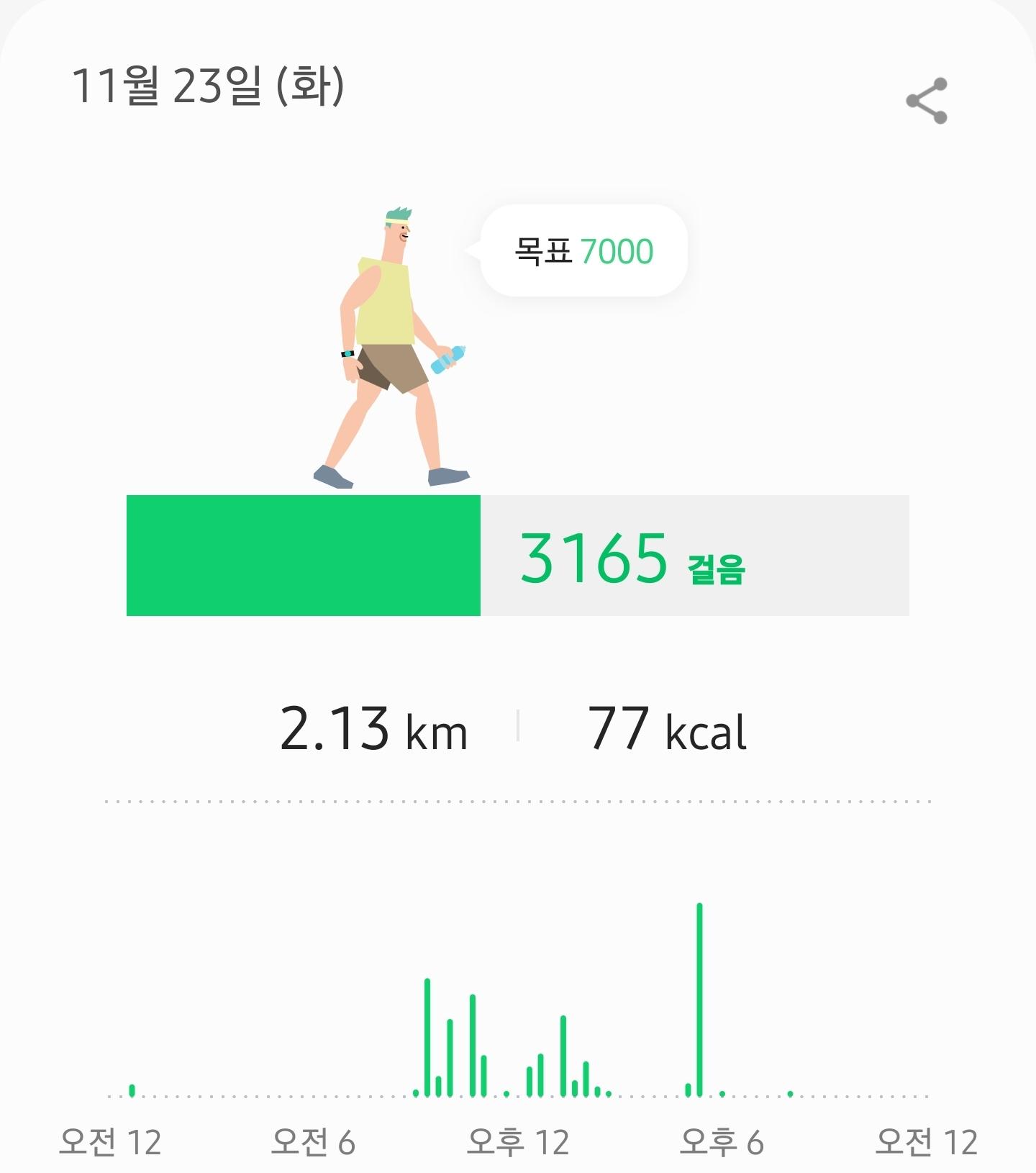 오늘은 저녁에 많이 걸어네요