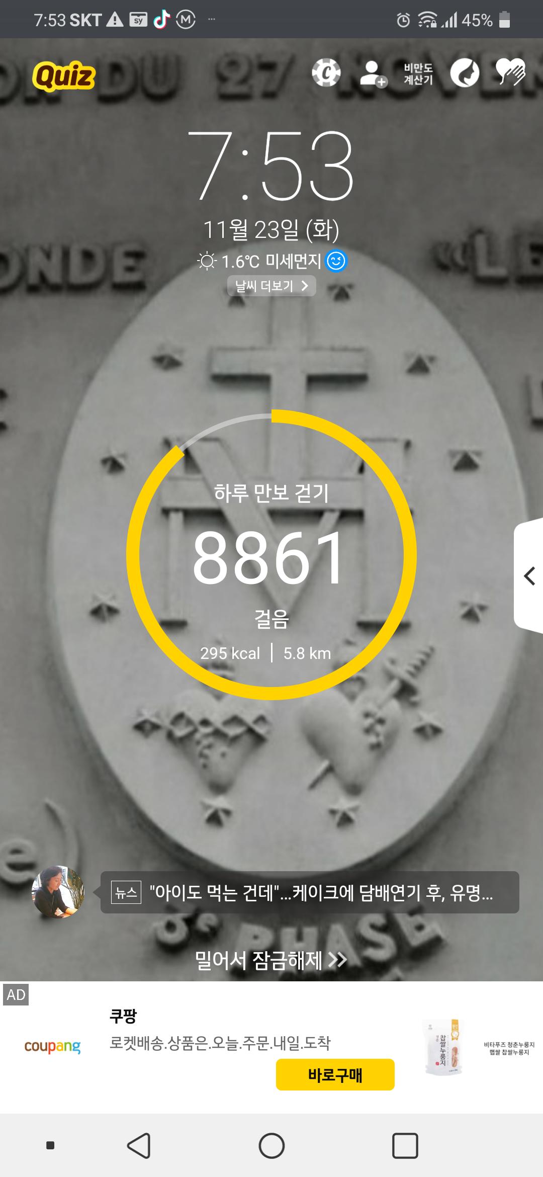 두툼한 바지와 패딩, 장갑도 끼고 걷기..체감상 많이 추웠나봐요. 손이 꽁꽁~오늘도 걷기에 동참해봅니다! 감기조심요~