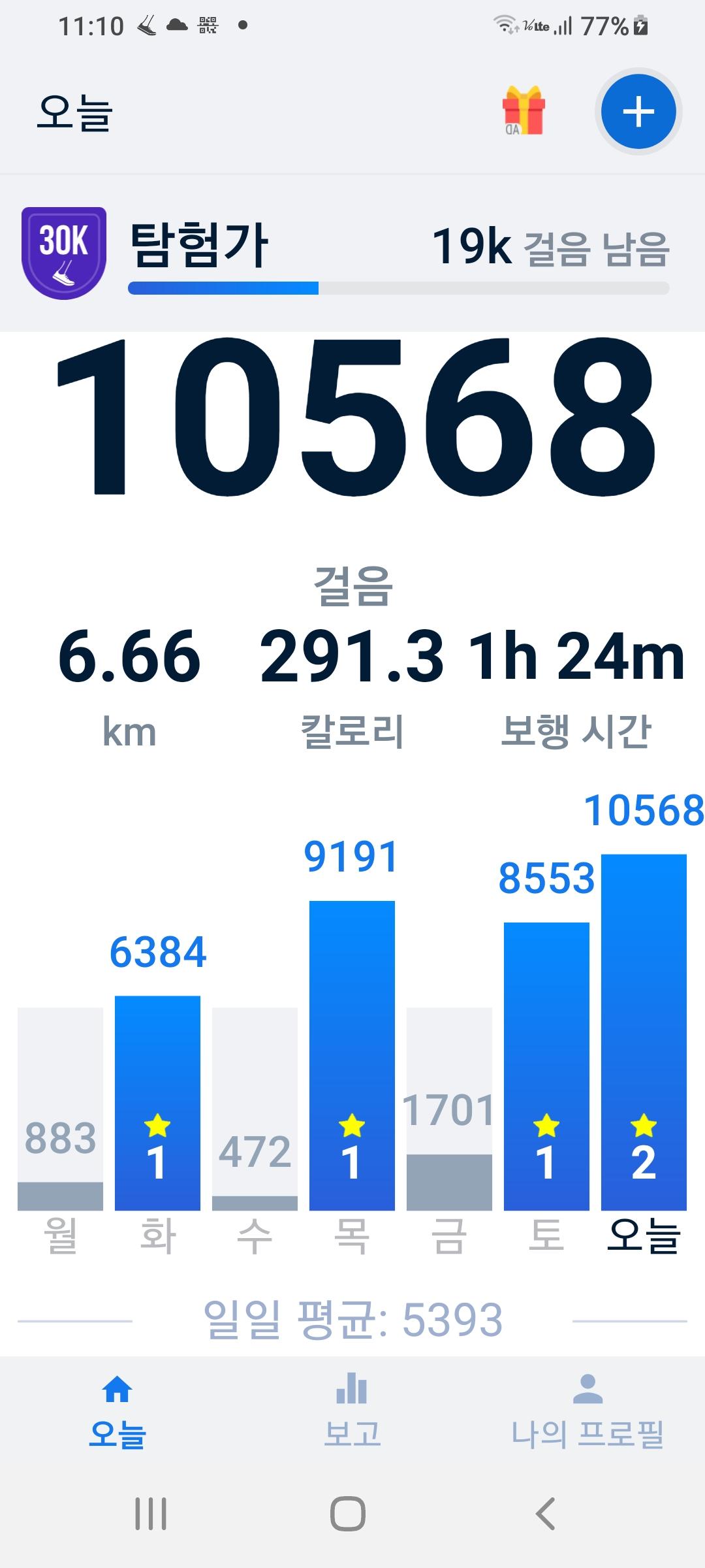 마트에서 많이 걸었다고 생각했는데 의외로 만보 달성이 안됐네요. 하루 만보 참 어렵네요!