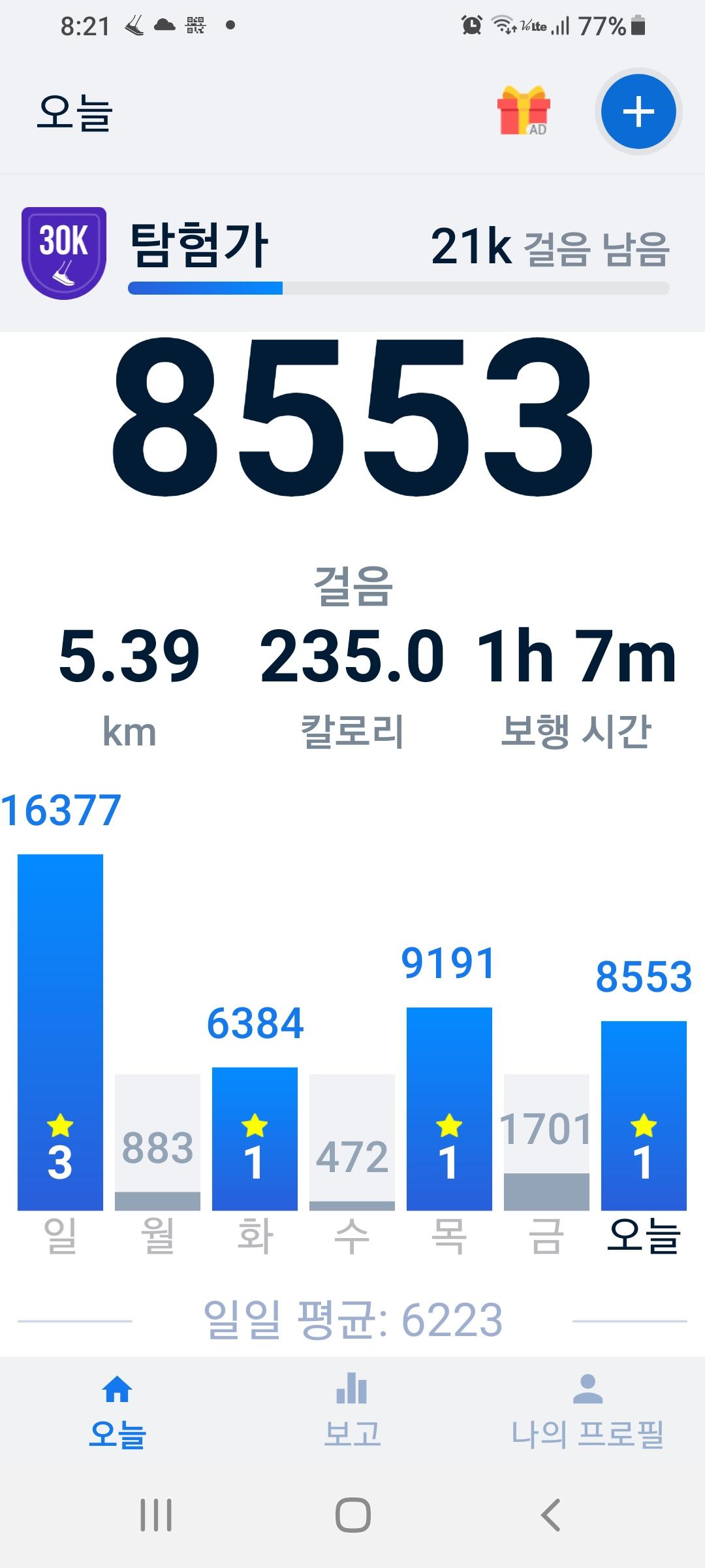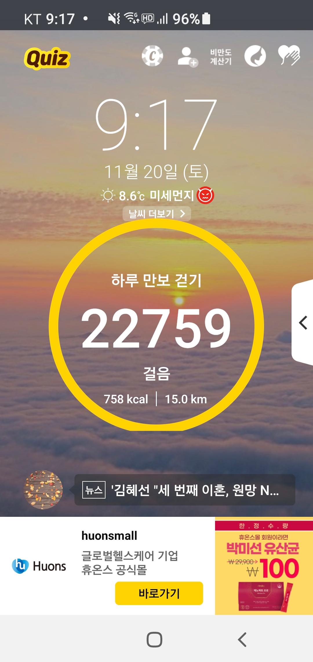 1만 9천보 걸었음