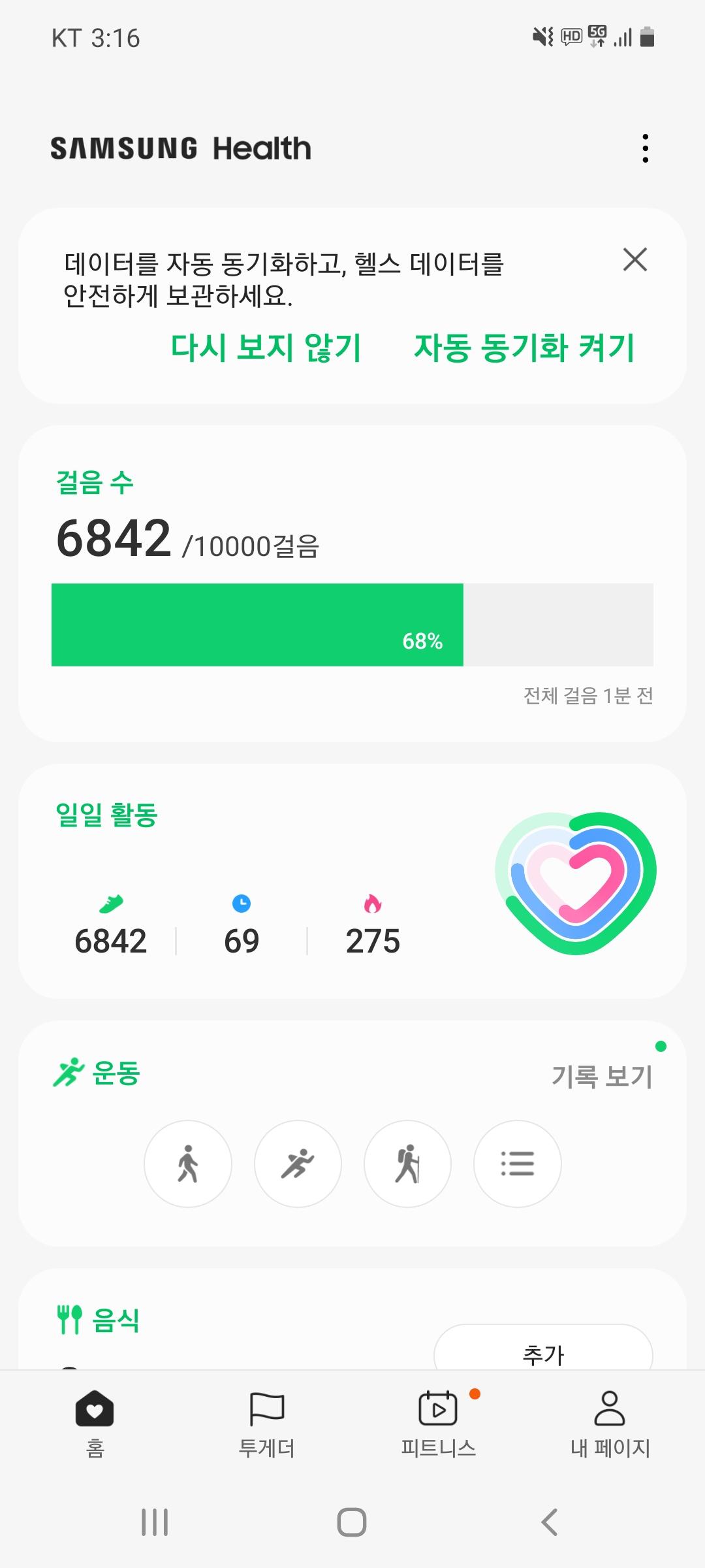 오늘 만보 걸을 예정입니다. 저녁에 매번 까먹어서 ㅋㅋ 일억모으기에 조금이라도 보탬이 되고 싶네요~~^^