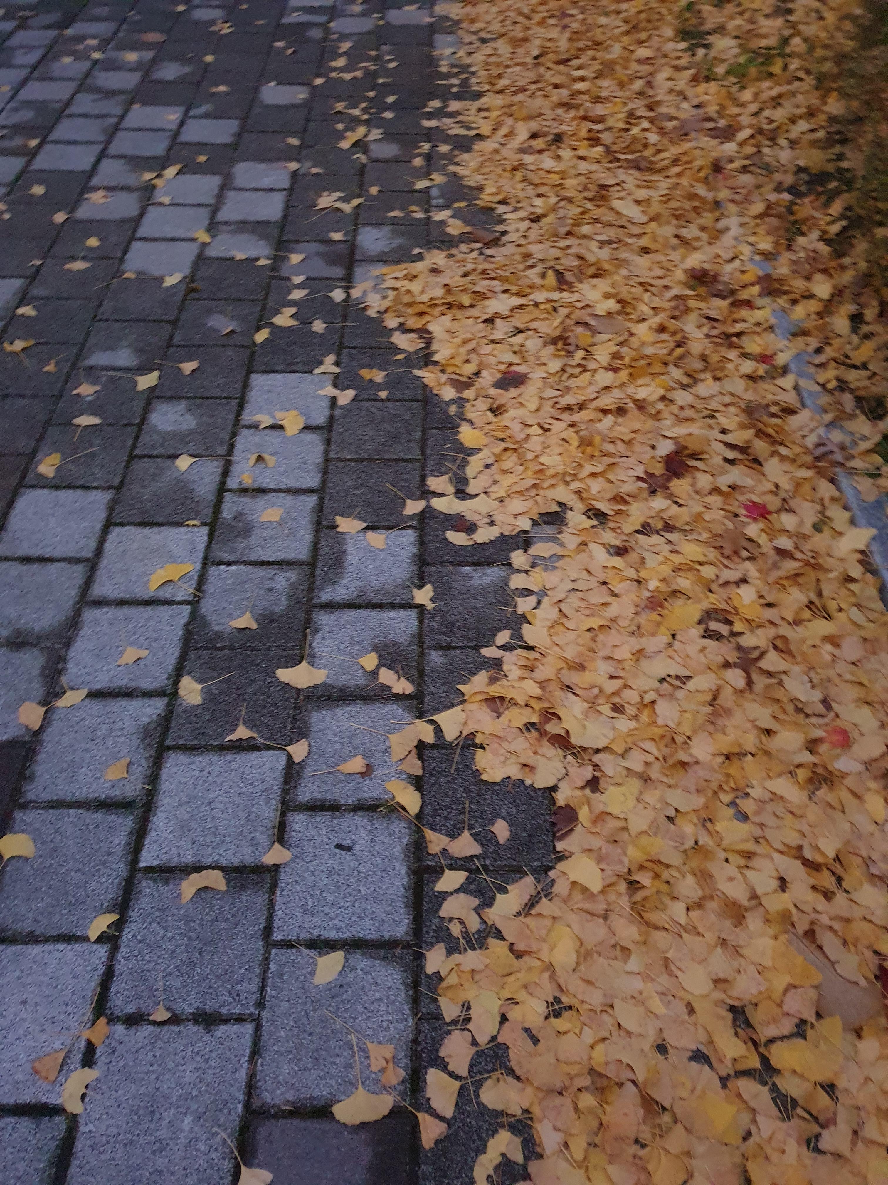 비바람에 은행잎이 다 떨어졌어요