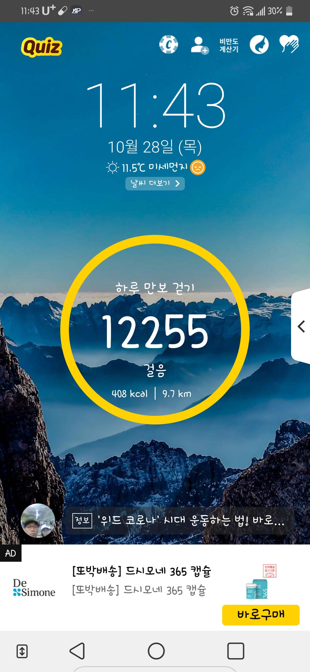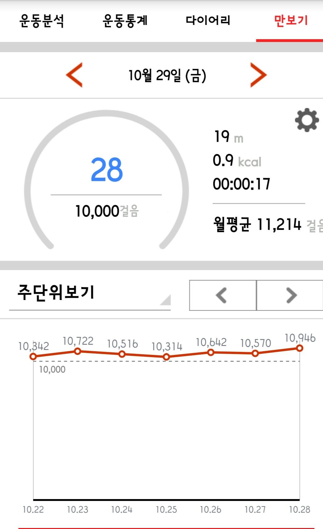 10월 28일 1만보 이상 걸음수 인증합니다.^^