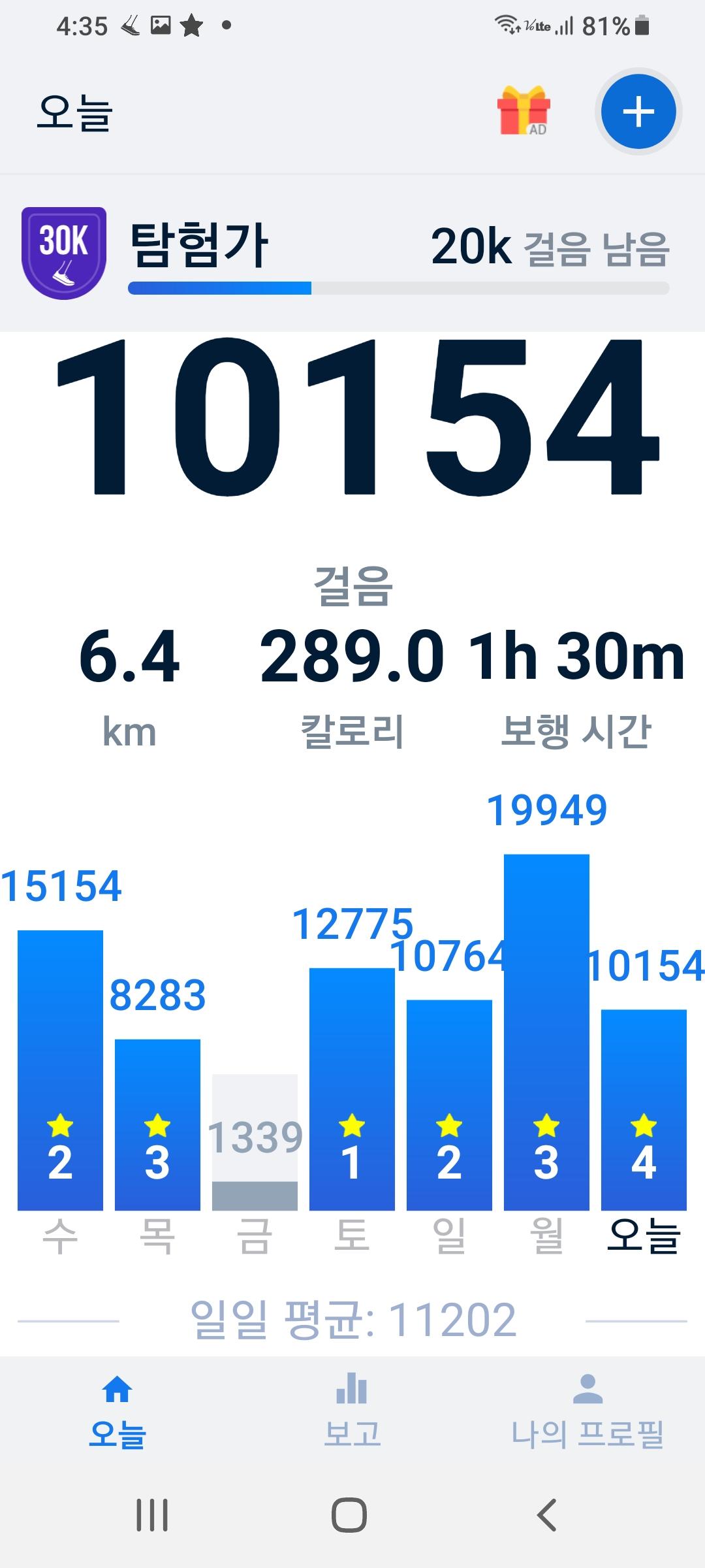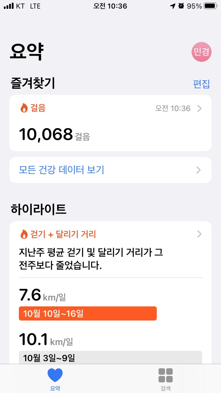 오늘은 1만보이상 걸었습니다