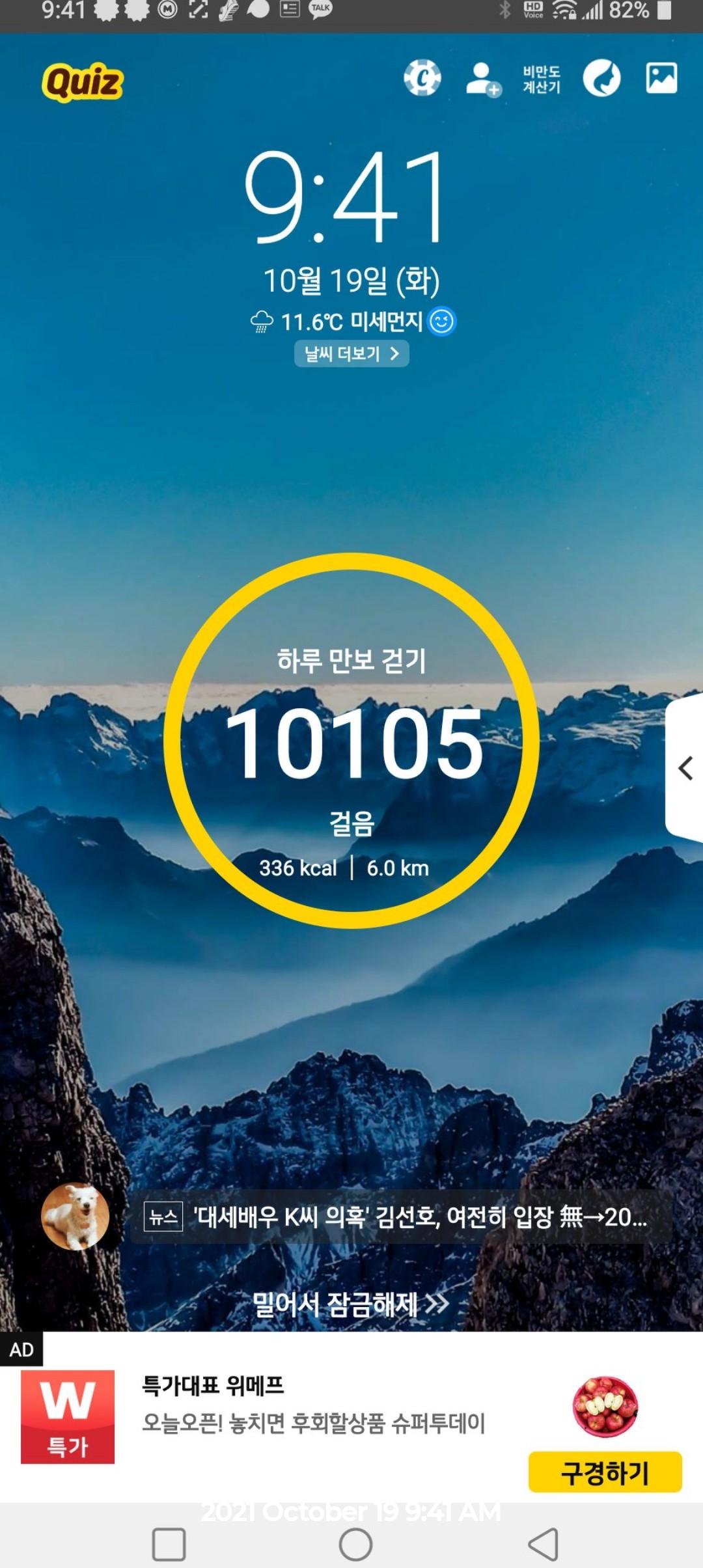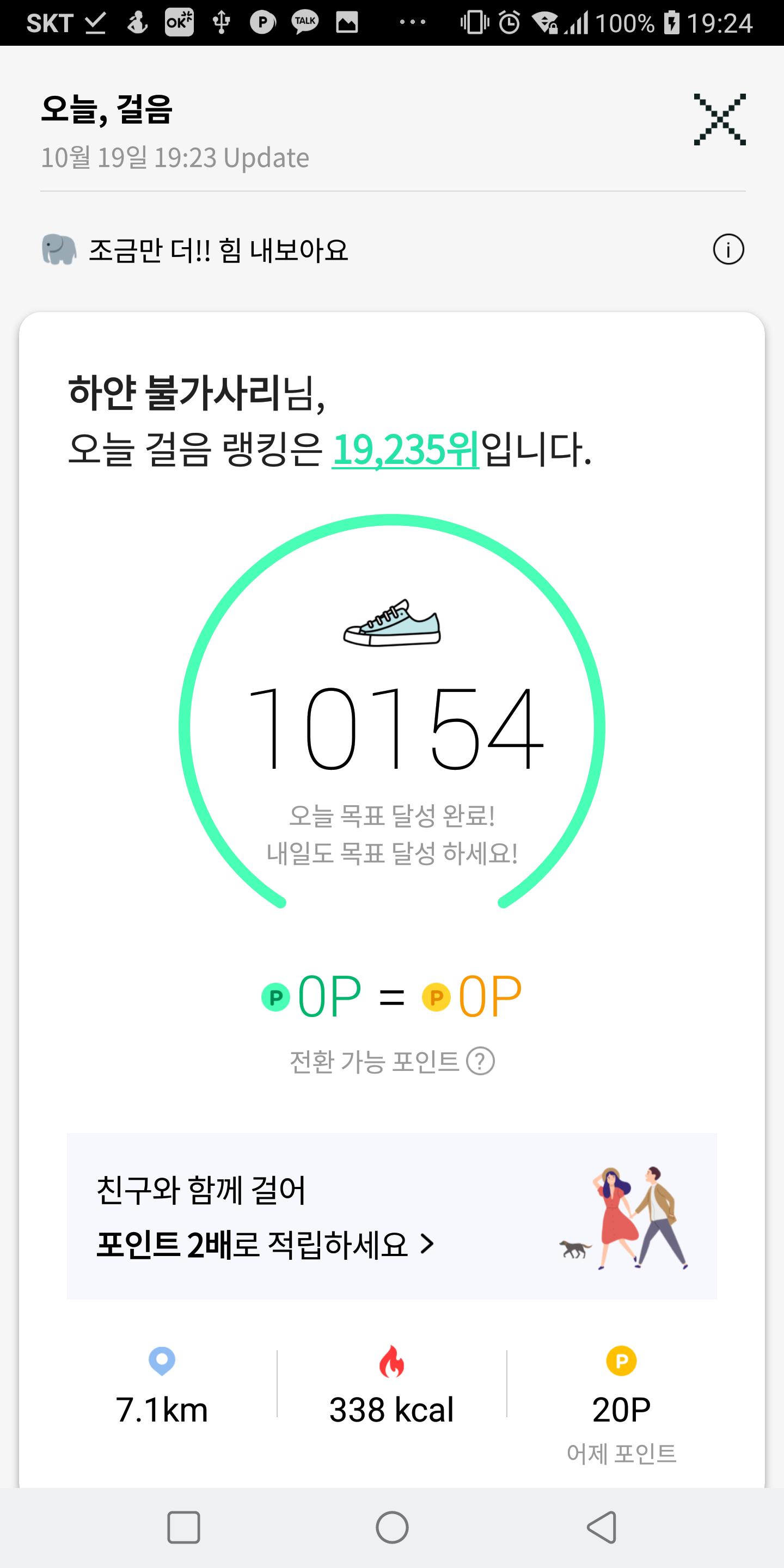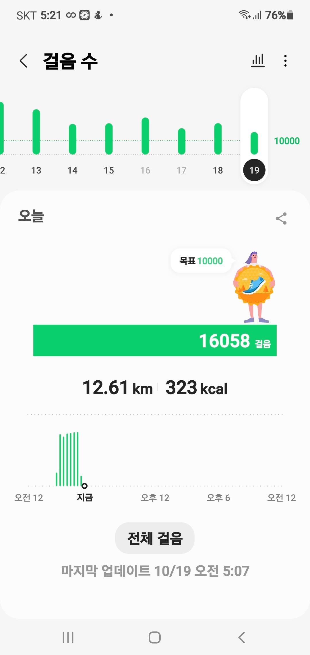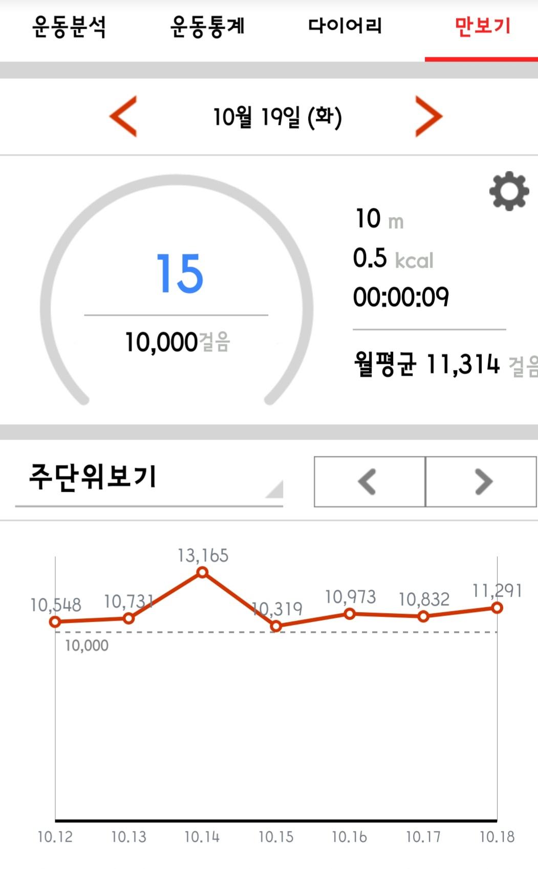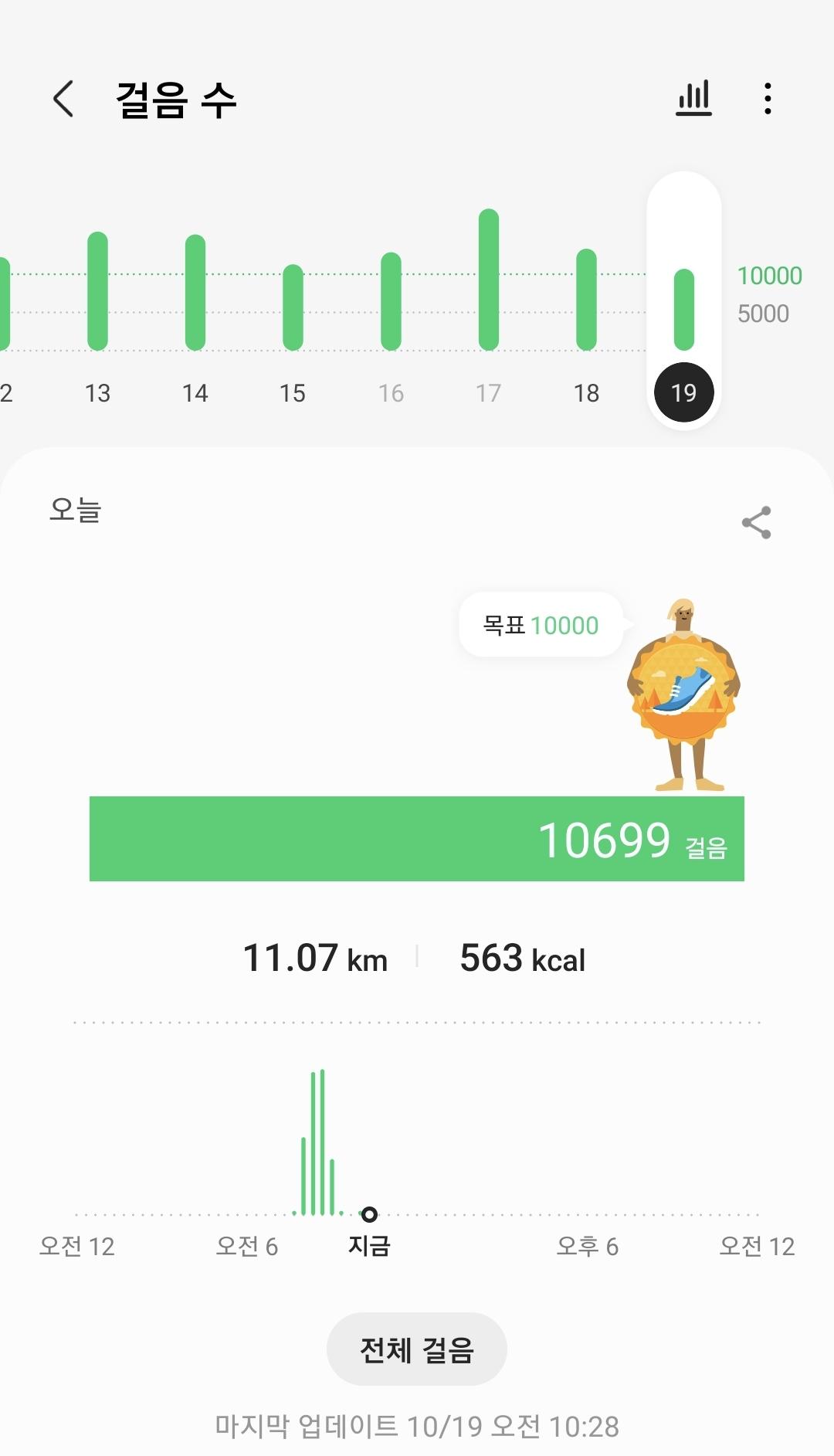 10월 18일 1만보 이상 걸음수 인증합니다.^^
