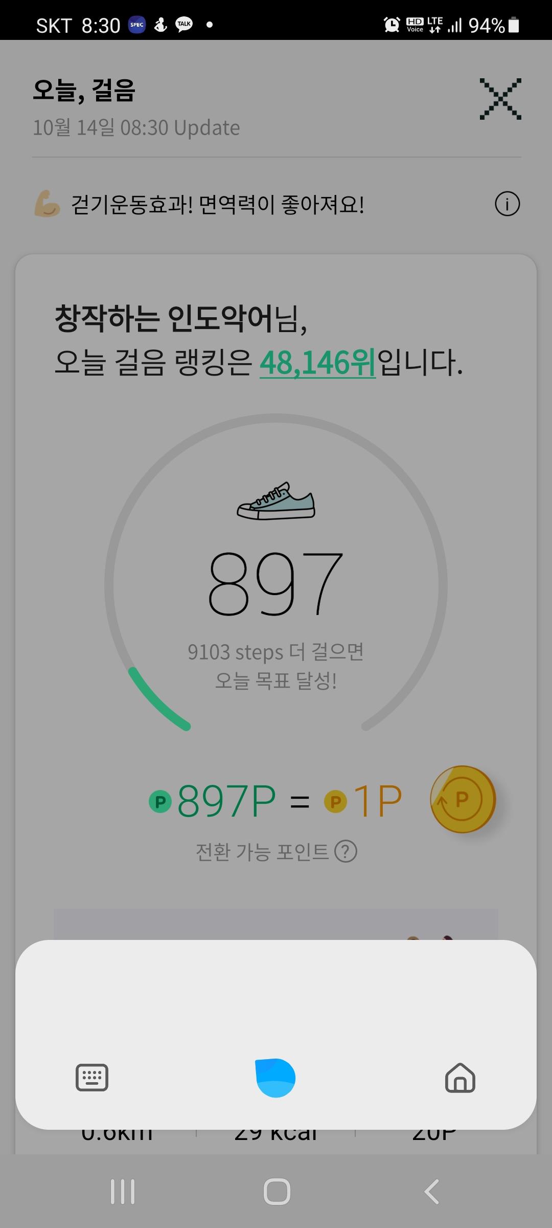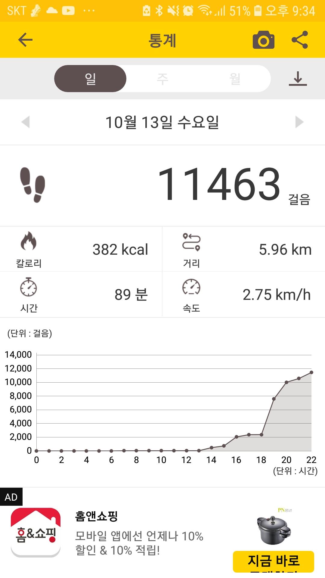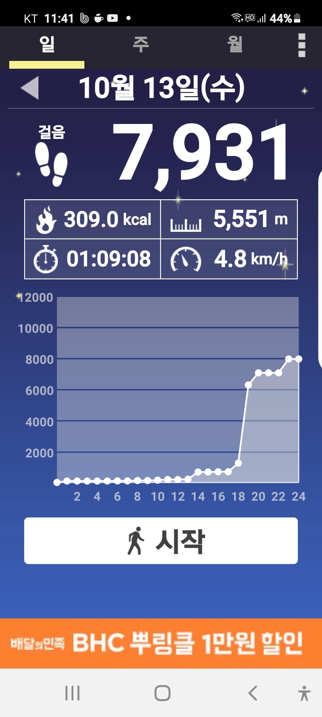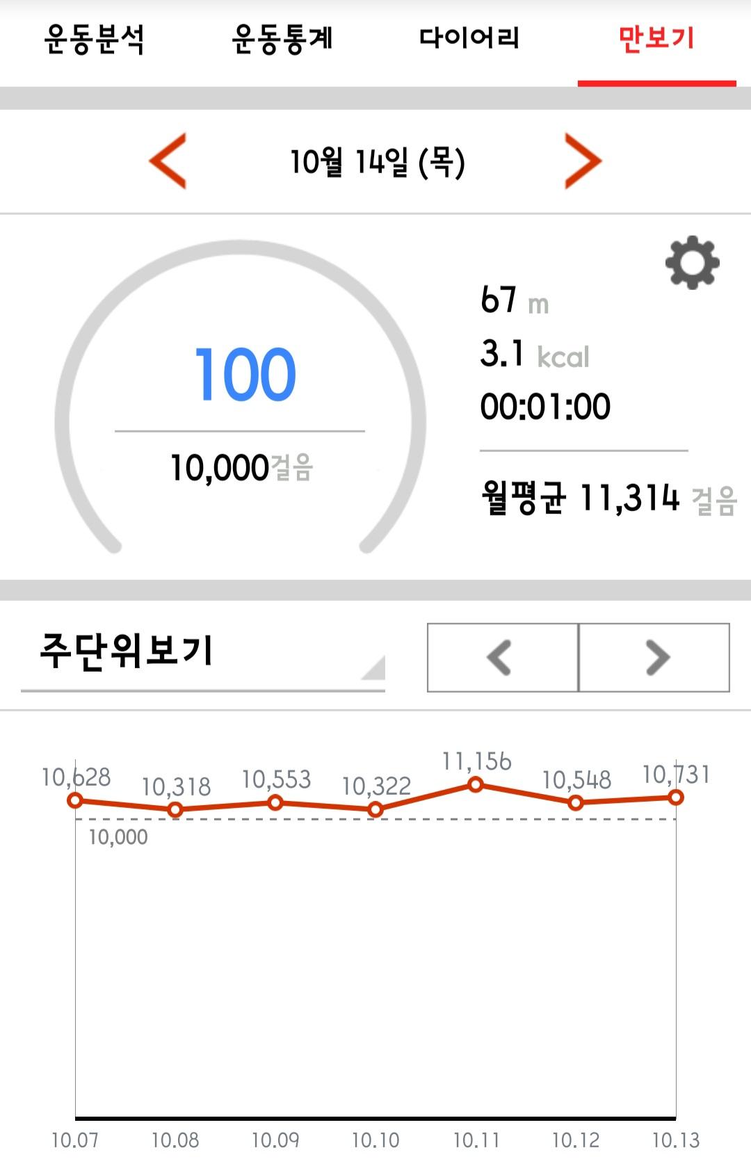 10월 13일 1만보 이상 걸음수 인증합니다.^^