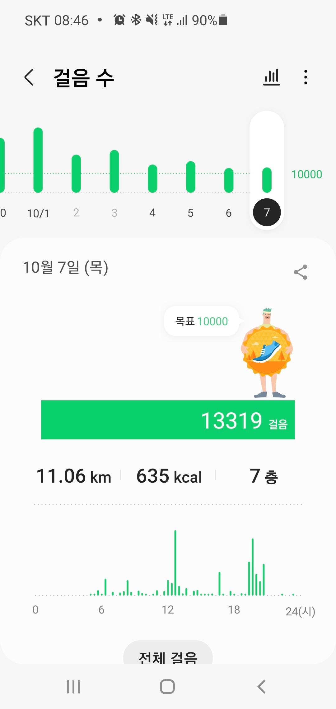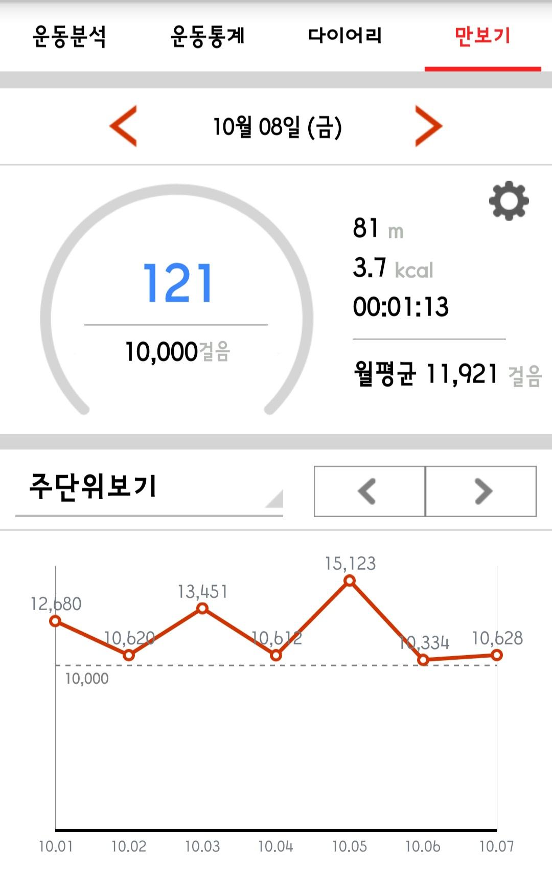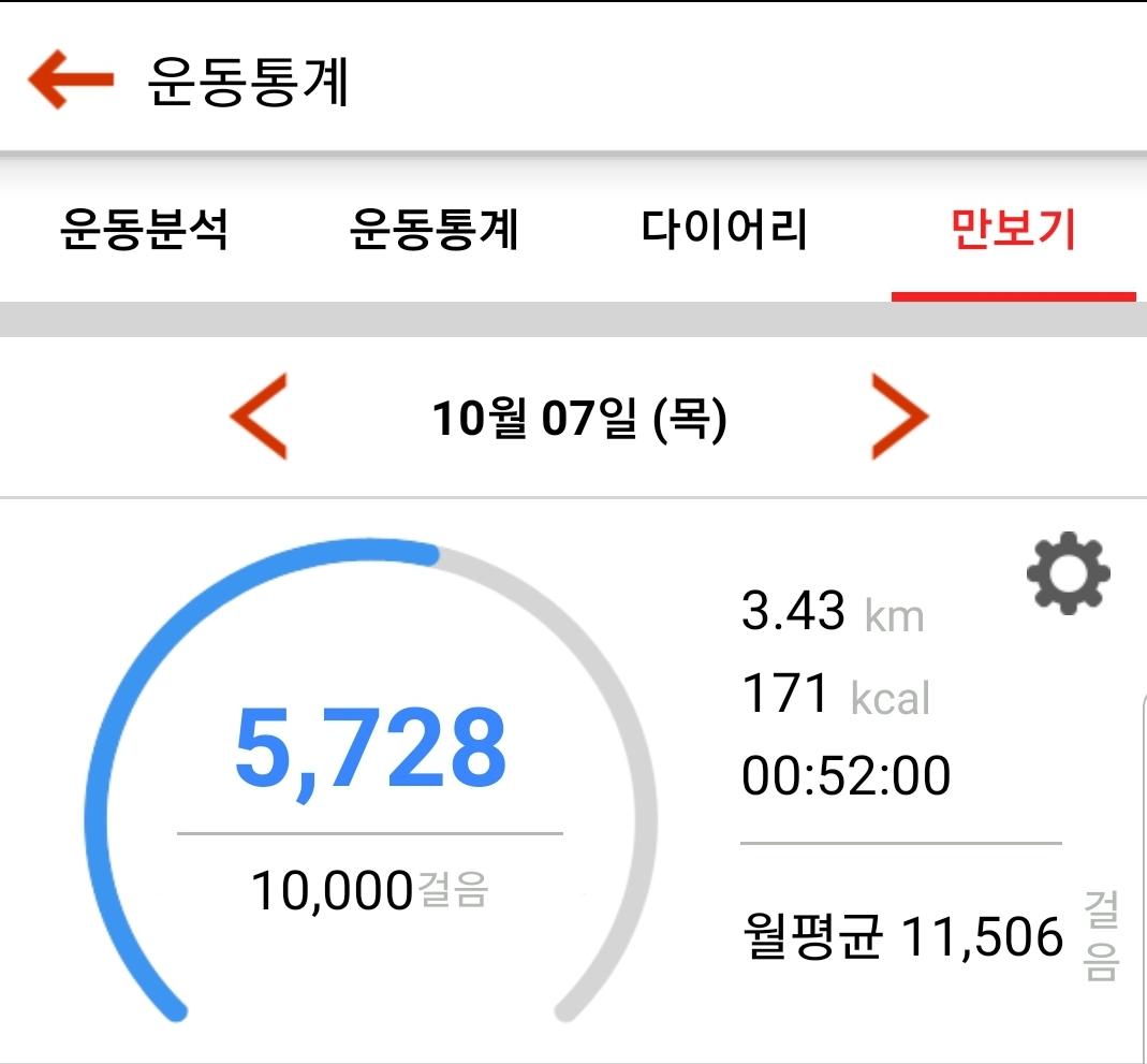 10월 7일 1만보 이상 걸음수 인증합니다.^^