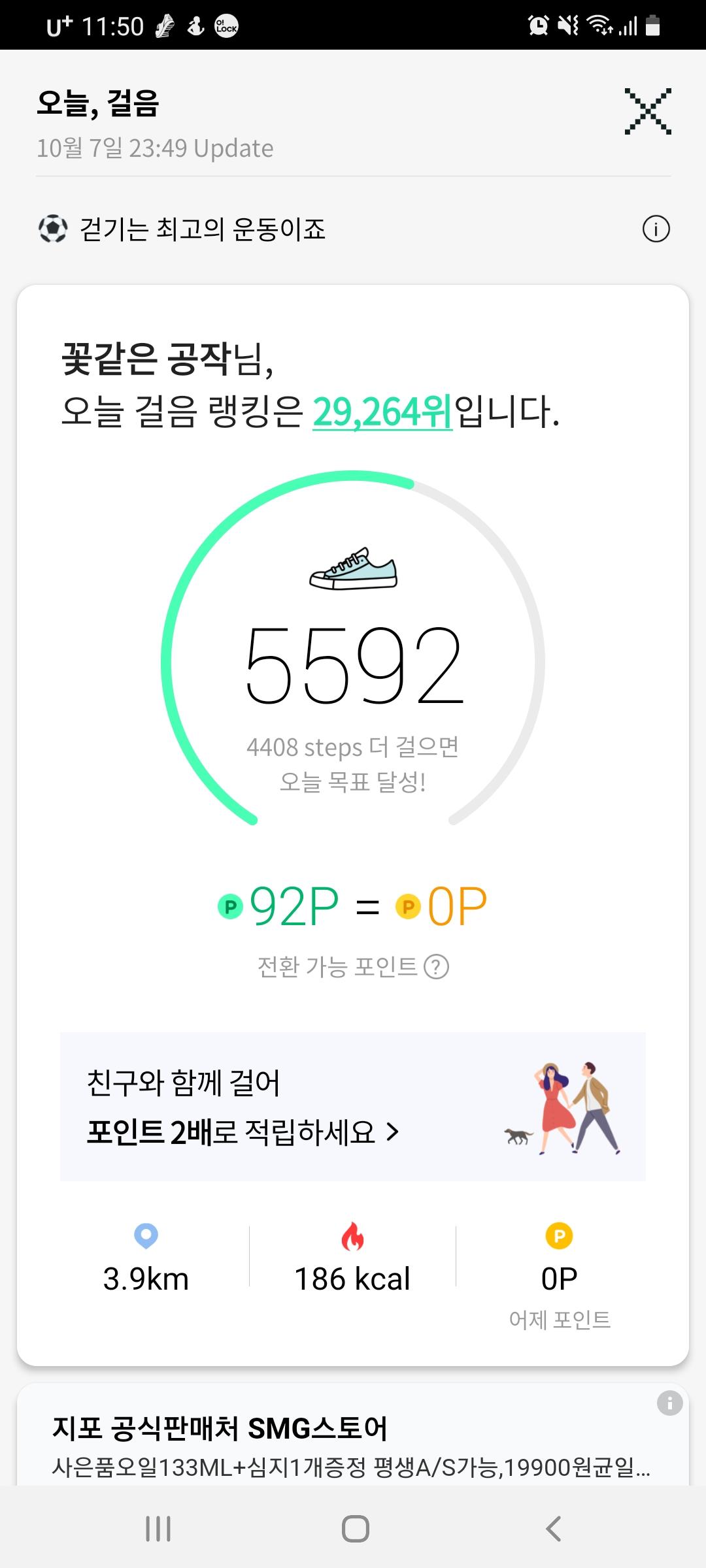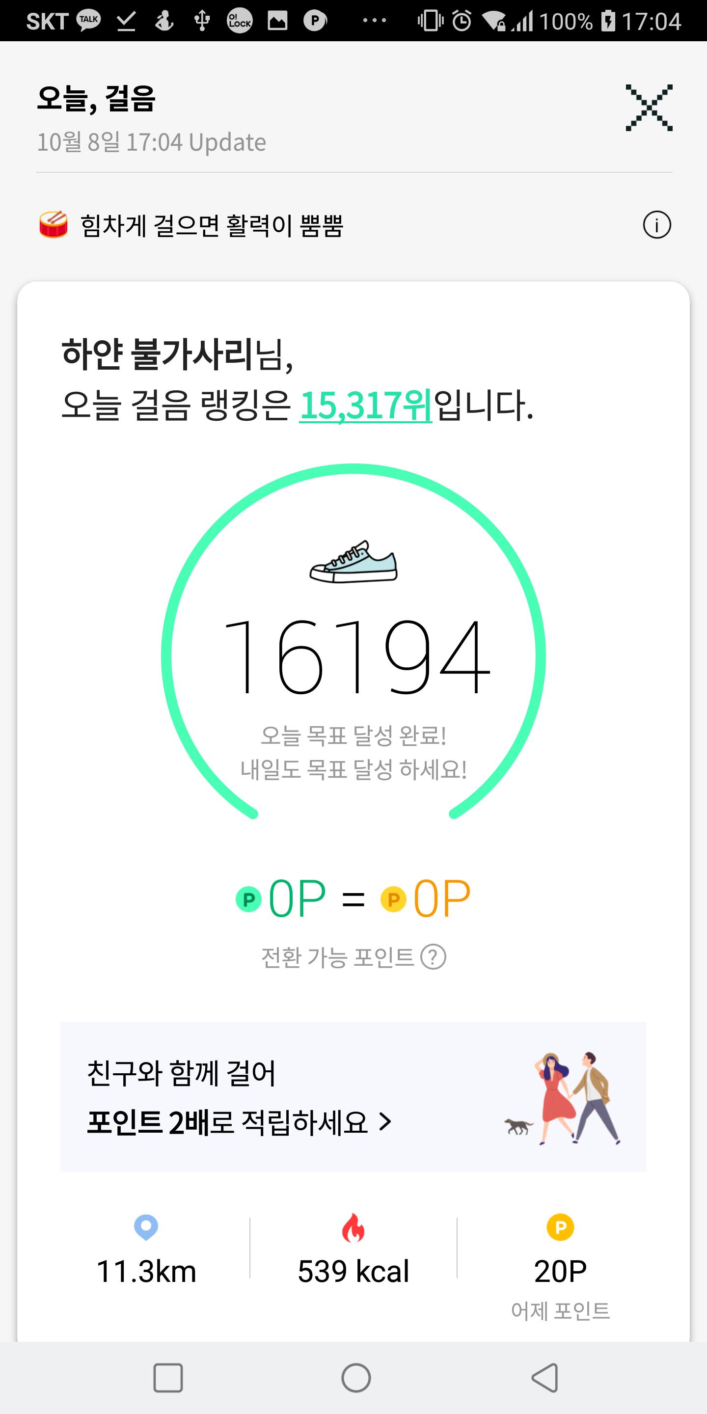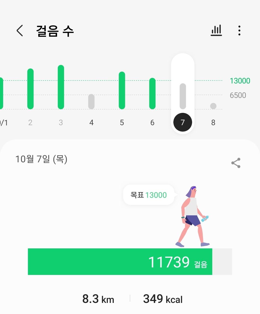 10월 7일 1만보 이상 걸음수 인증합니다.^^