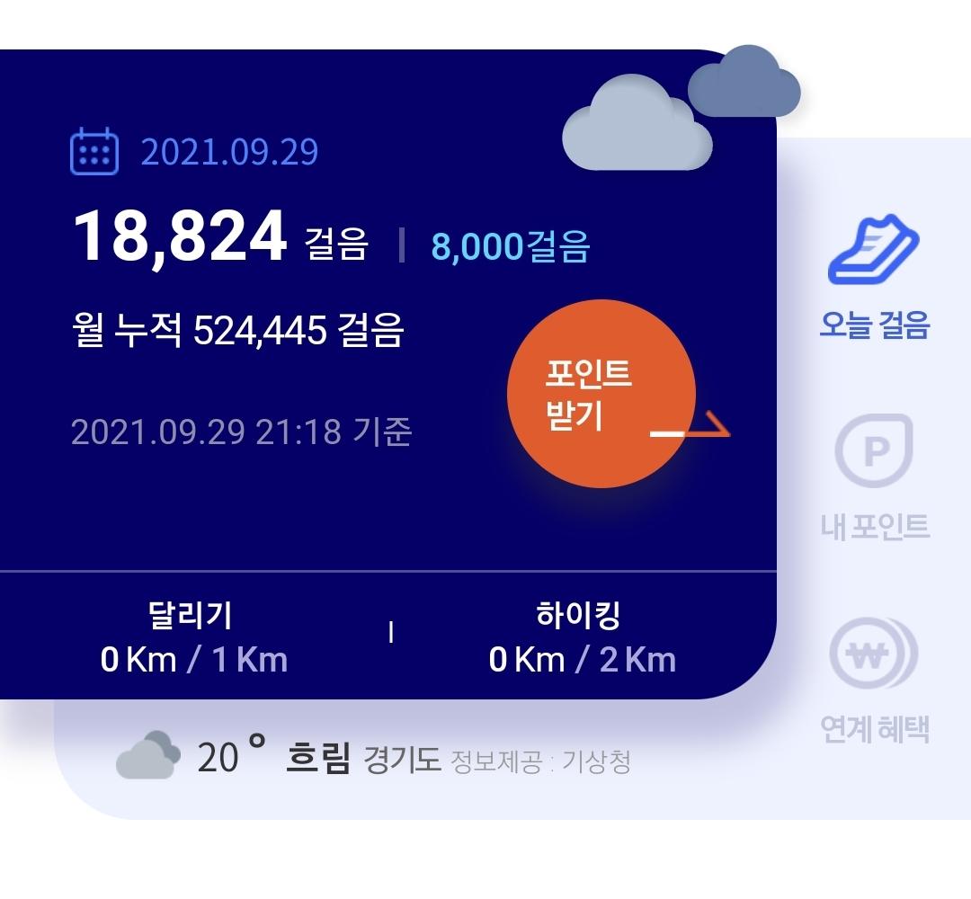 ^-^*오늘은 2만보를 못걸었지만 내일을 위하여 영케어러,굿워커,전성기 파이팅!