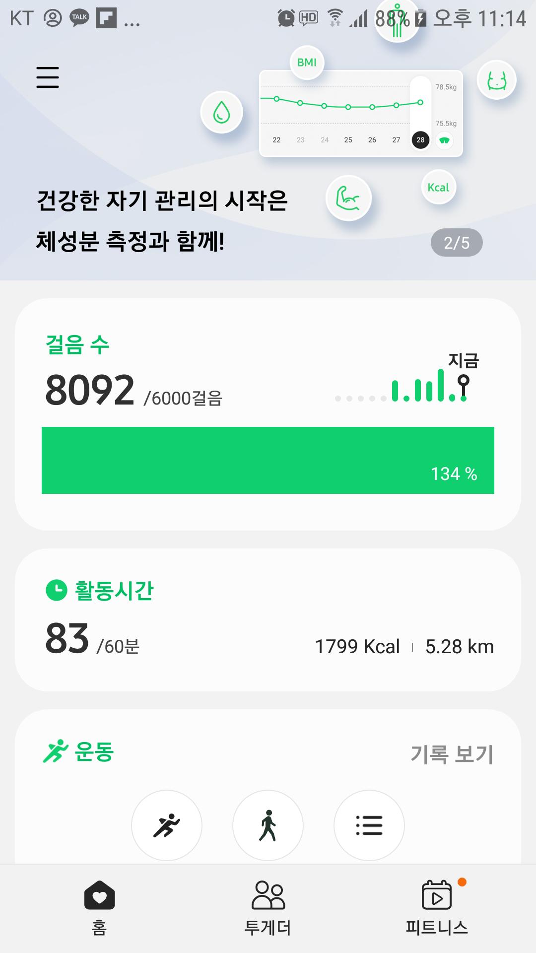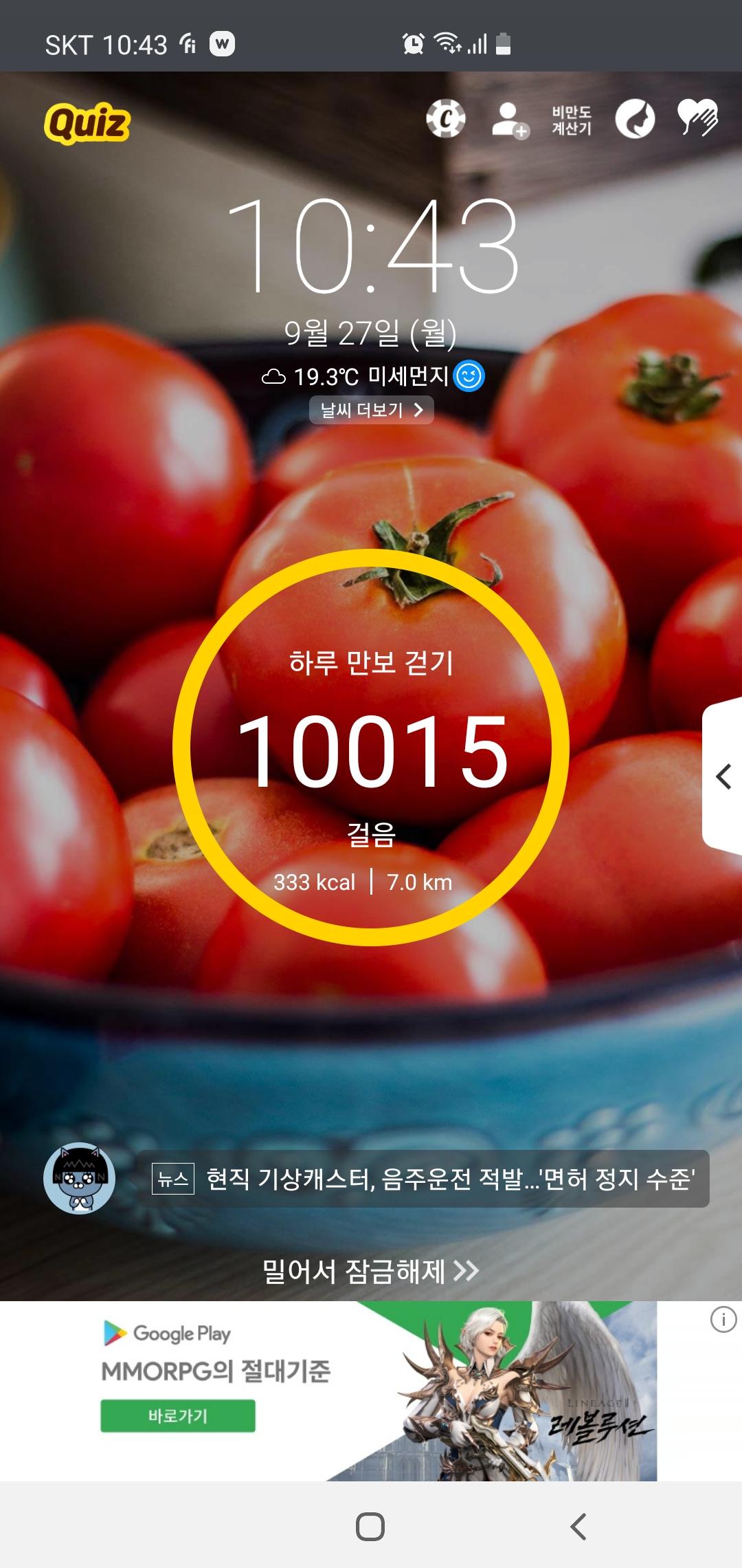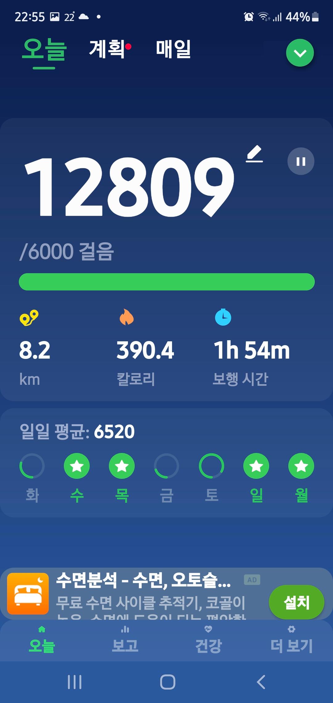 오늘은 모처럼 만보이상 달성 했습니다