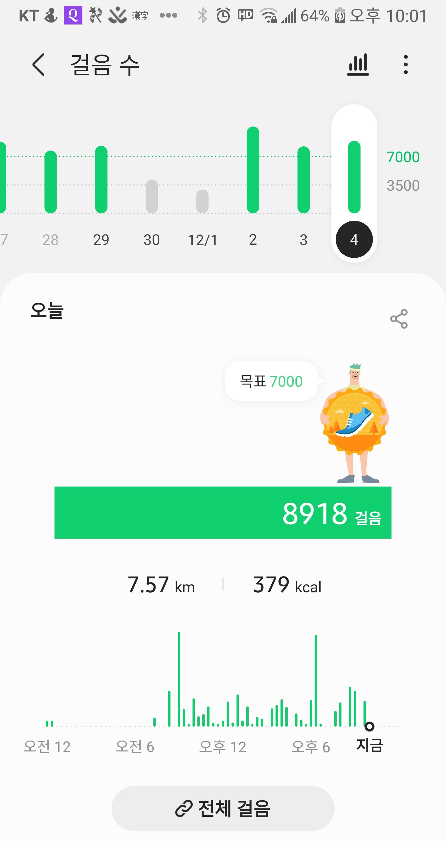 12월 3일 1만보 이상 걸음수 인증합니다.^^