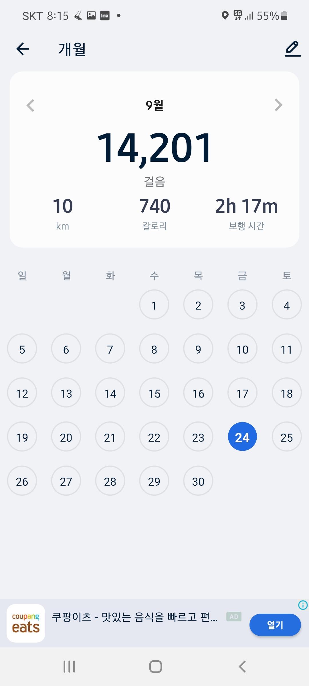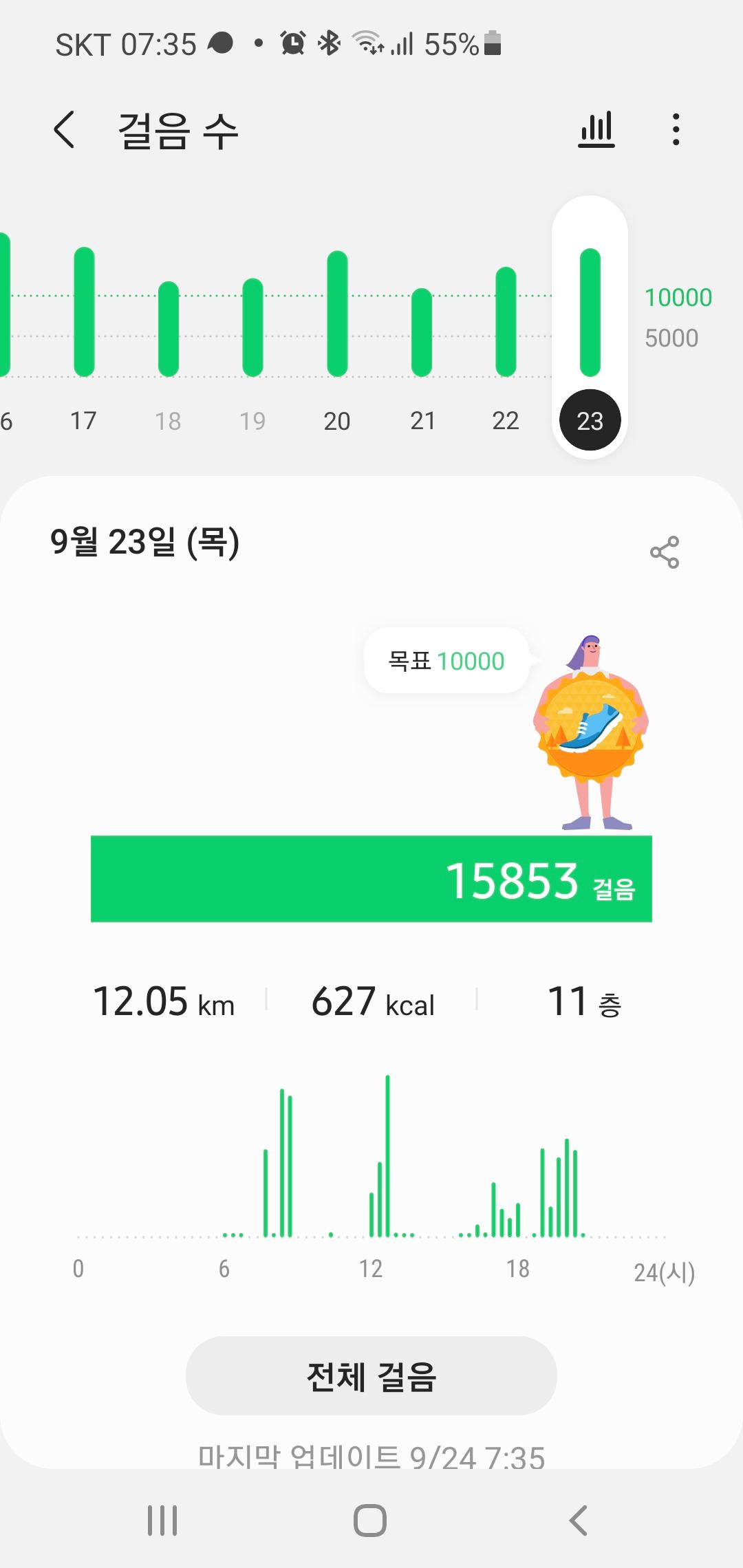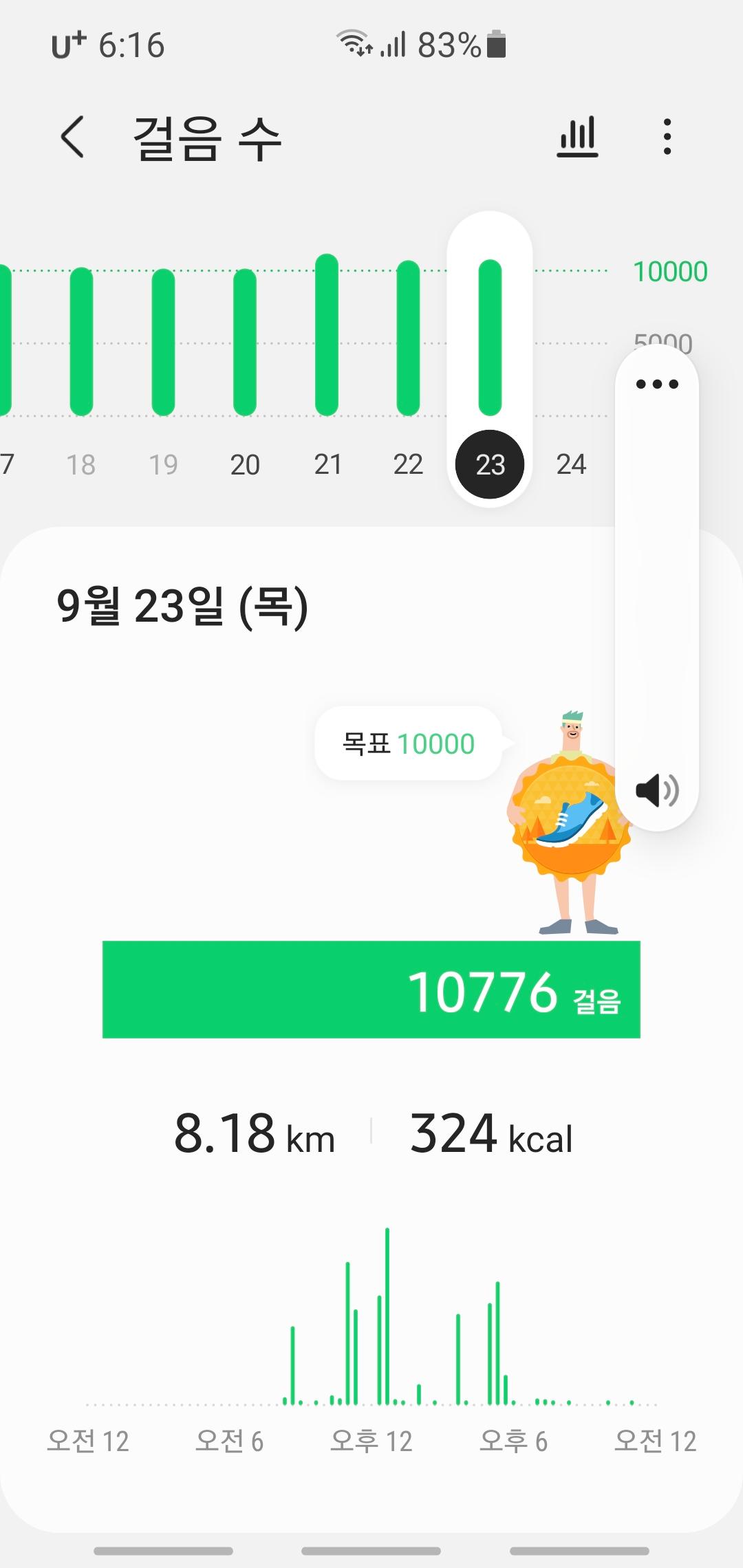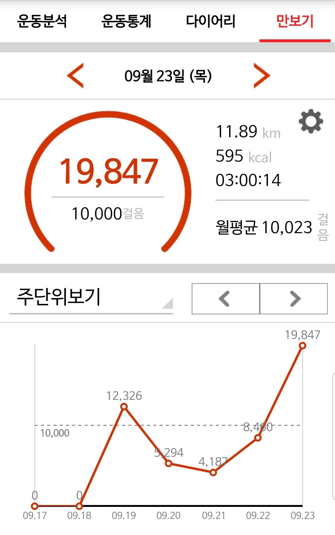9월 23일 1만보 이상 걸음수 인증합니다.^^