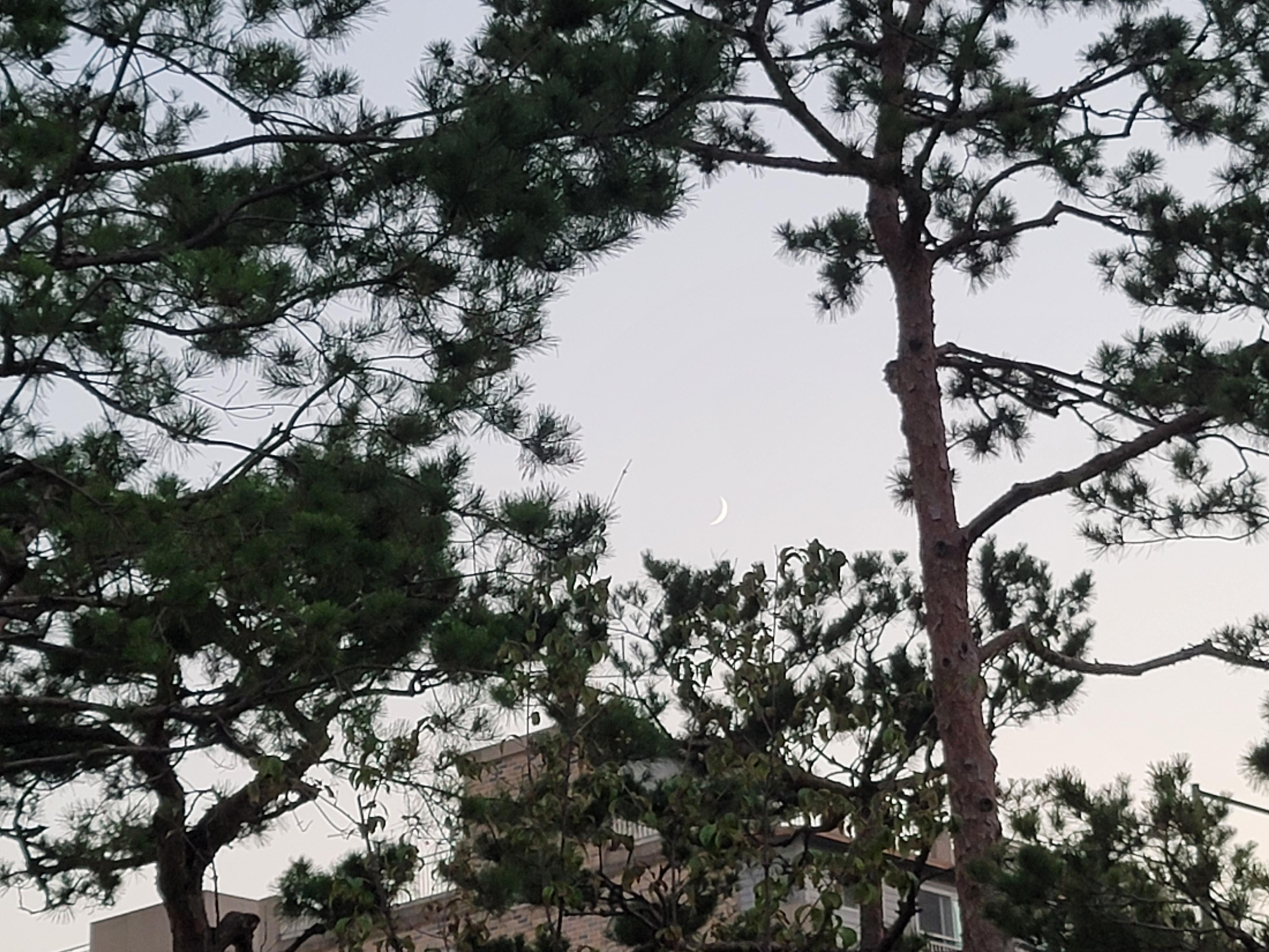 어제 해질녘 가족과 산책 하던중에 손톱모양의 달🌛 이 떠서 찍어봤어요