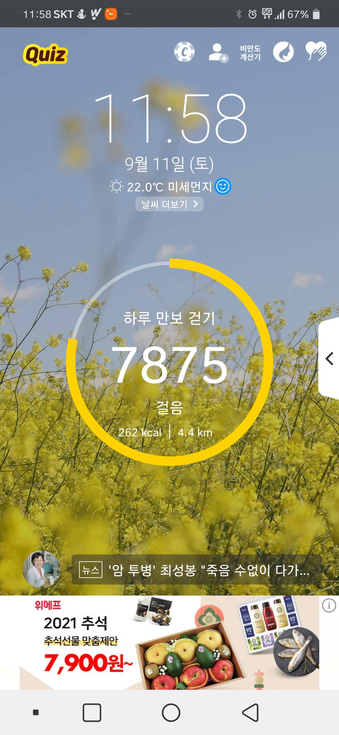 9윌 11일 1만보 이상 인증합니다.