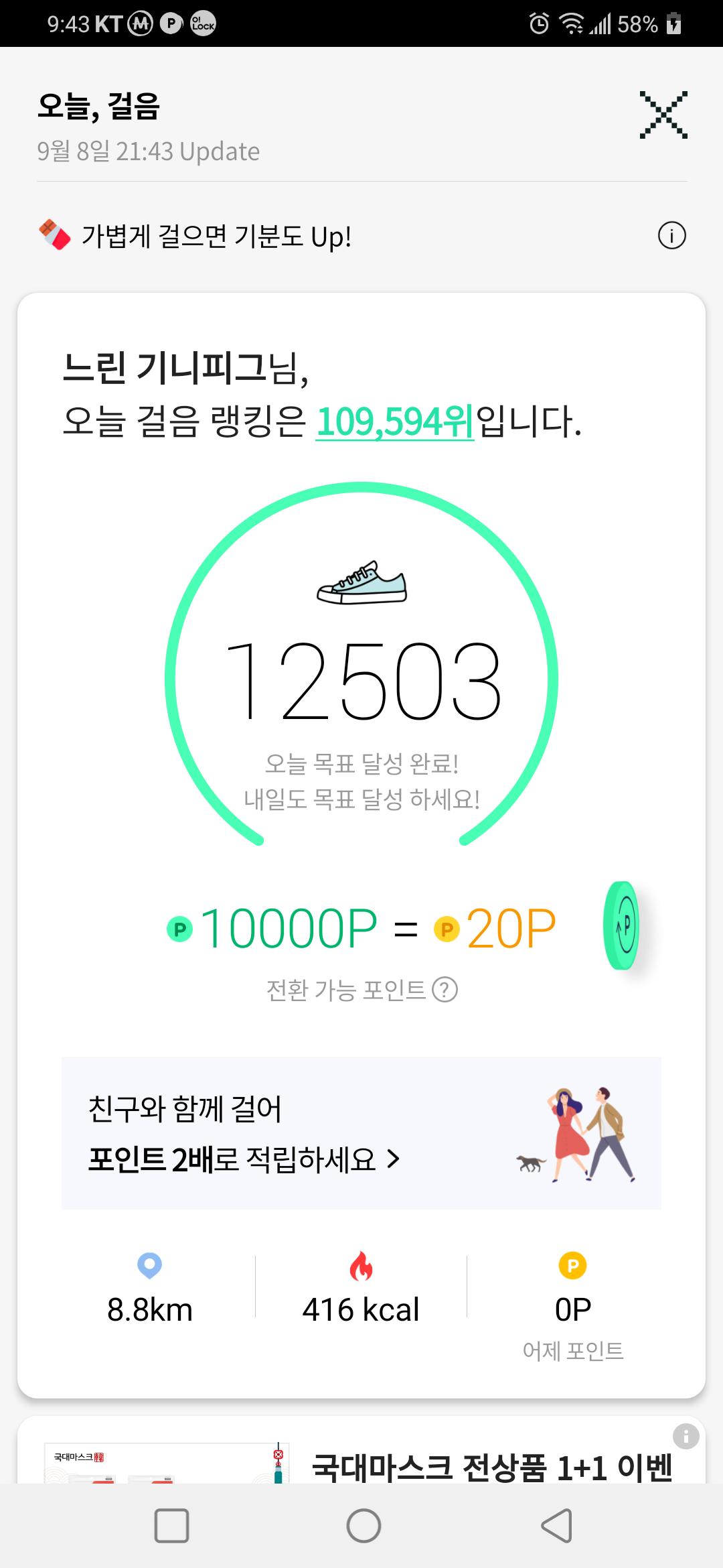 오늘 걷기 캠페인 참여합니다