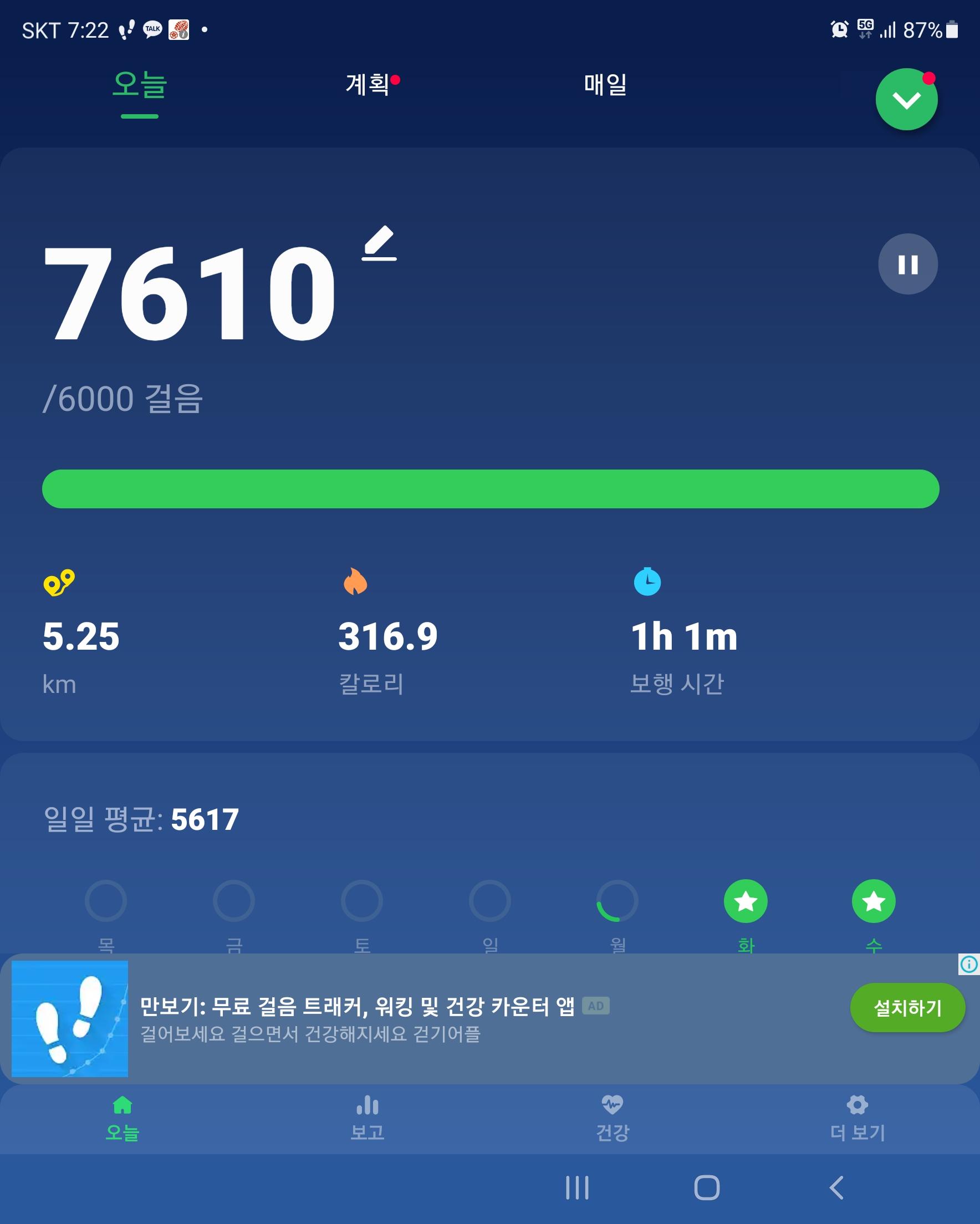 7천보 이상 완료