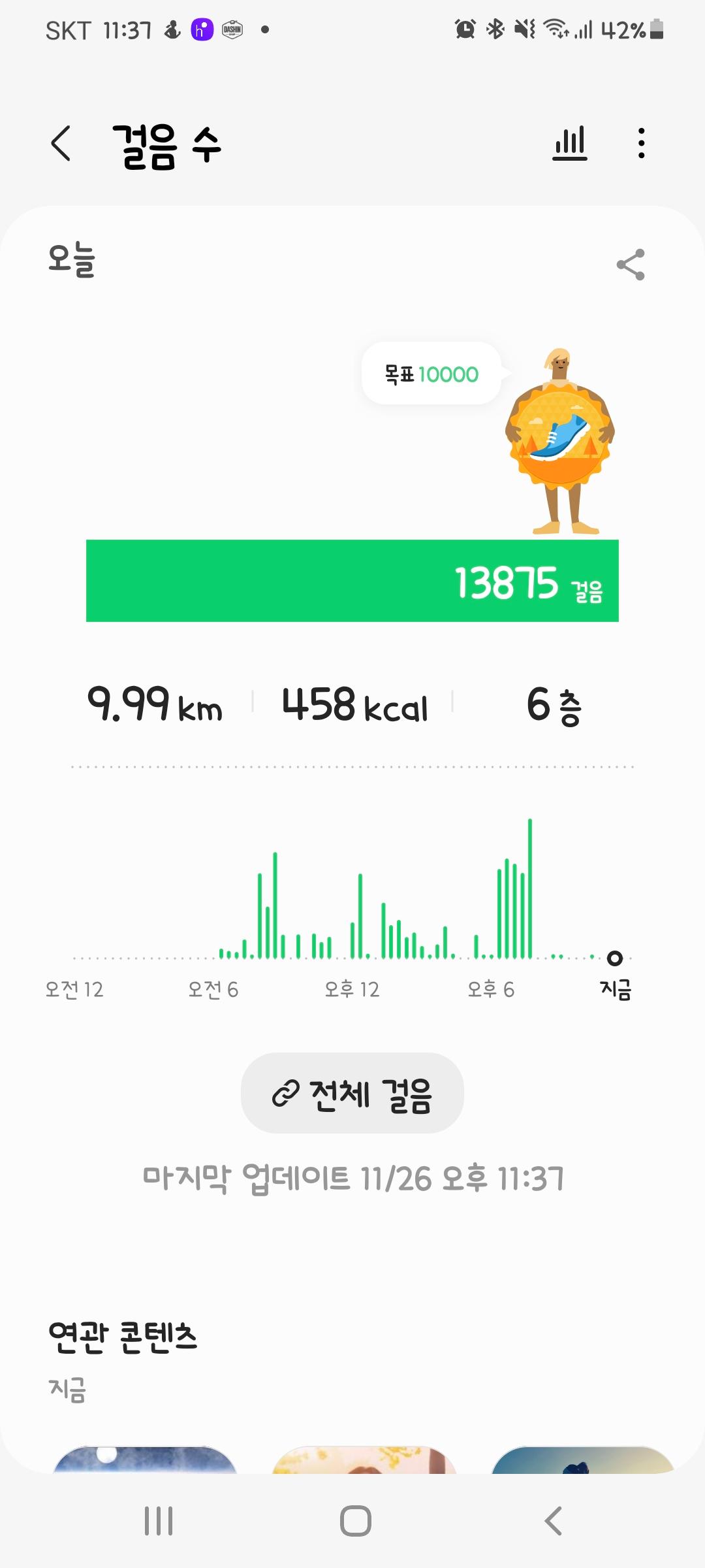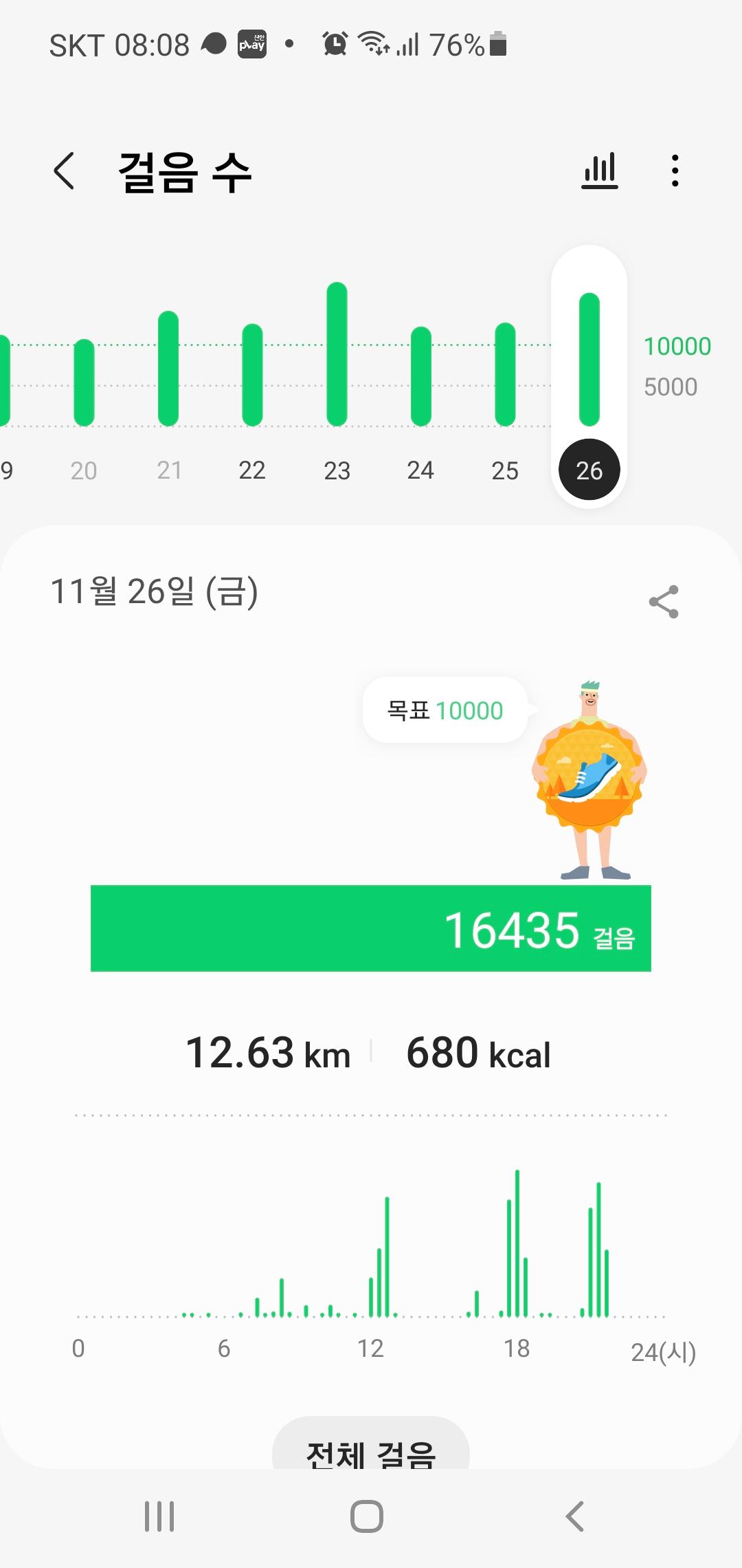 11월 26일 1만보 이상 걸음수 인증합니다.^^