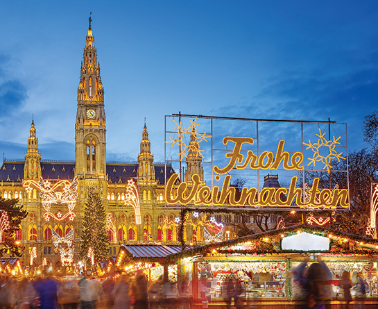 12월이 되면 비엔나는 마리아 테레지아 광장과 쇤브룬 등 유명 관광지와 작은 성당 골목골목이 온통 크리스마스 분위기로 무르익는다. 그중에서도 시청 앞 광장에서 열리는 크리스마스 마켓은 크리스마스 이벤트 가운데 가장 규모가 크다. 광장 내에 줄줄이 들어선 150여 개 이상의 상점에는 다양한 디자인의 향초와 화려한 트리 장식용품들로 가득 차 있다. 마켓 안에서는 관광객들을 위해 크리스마스 케이크 장식과 초 만들기 등 다양한 행사도 열린다. 크리스마스 마켓이 열리는 기간에는 비엔나 시내에 한시적으로 순록 기차가 다닌다. 순록 기차에 몸을 싣고 즐기는 시내 투어는 마치 동화 속 같은 이국적인 풍광을 선사한다.