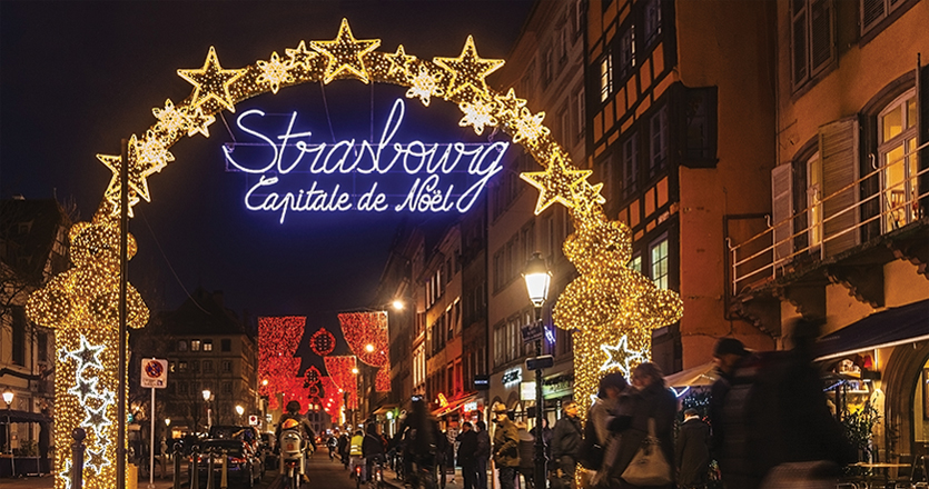 2013년 ‘유럽 최고의 크리스마스 마켓’으로 선정된 마켓으로, 프랑스에서는 크리스마스 풍경이 가장 아름다운 도시로 파리보다 이곳 스트라스부르를 꼽는다. 12월이 되면 스트라스부르 전 도시에 걸쳐 겨울 레포츠, 전시회 등 다양한 이벤트가 펼쳐지는데, 그중에도 크리스마스 마켓이 백미로 꼽힌다. 마켓이 열리는 광장 중앙에는 30미터(5층 높이)의 거대한 크리스마스트리가 설치된다. 뉴욕 록펠러센터의 트리(영화 <나 홀로 집에>에서 주인공 케빈이 찾아갔던 그 트리다)에 이어 세계에서 두 번째로 큰 규모를 자랑하는 이 트리는 주변 건물들보다도 높이 솟아 있다 보니 그 앞에 서 있으면 마치 동화의 한 장면에 들어와 있는 듯한 착각을 느끼게 한다. 특히 스트라스부르는 크리스마스트리 나무인 전나무가 이곳의 주요 수입원이었을 정도로 예전부터 전나무가 유난히 크기로 유명했던 곳으로, 16세기부터 광장에 아름드리 전나무로 크리스마스트리를 장식하는 문화가 금까지 이어지고 있다.