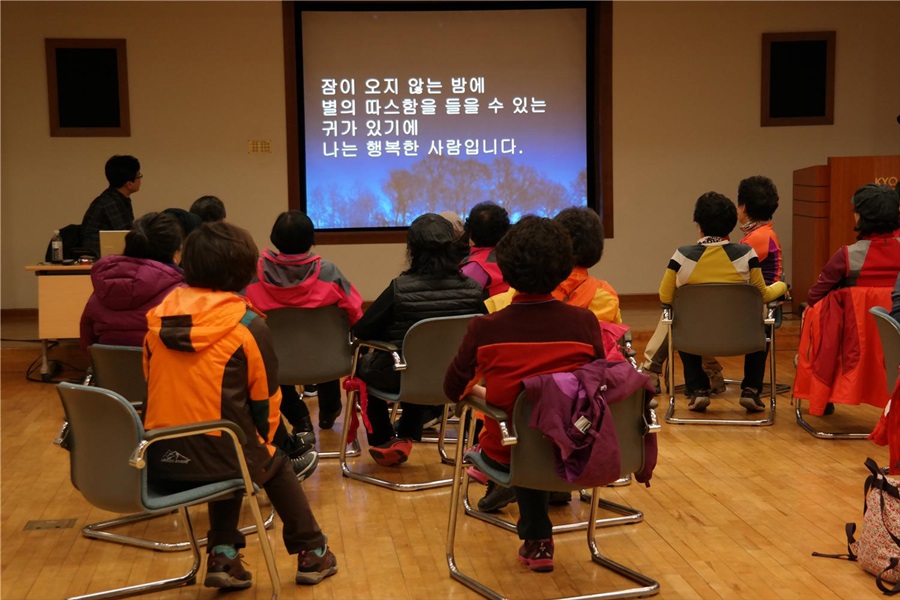 이제 캠프의 마지막 시간입니다. 조용히 가슴에 손을 얹고 나에게 편지를 씁니다. 한 달 뒤, 일 년 뒤의 나에게 진심어린 마음을 담아 축하와 축복을, 응원과 격려를 전합니다. 살아 온 지난 시절이 생각나 눈시울이 붉어지기도 하고, 용기내어 살아 갈 내일이 괜스레 기대되기도 합니다.