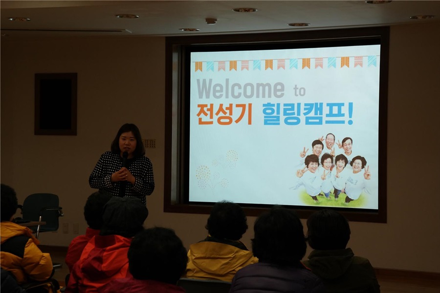 전성기힐링캠프는 삶이 힘들고 일상이 버거운 베이비부머, 5060세대 우리엄마아빠에게 힘을 드리고자 준비된 시간입니다. 익숙한 동네골목을 떠나 누구의 엄마도 아빠도 아내도 남편도 아닌, 오롯이 나의 이름으로만 기억되는 1박2일의 시간. 힐링캠프를 통해 삶의 희망과 용기를 얻고 자신을 되찾는 시간을 가져보세요.